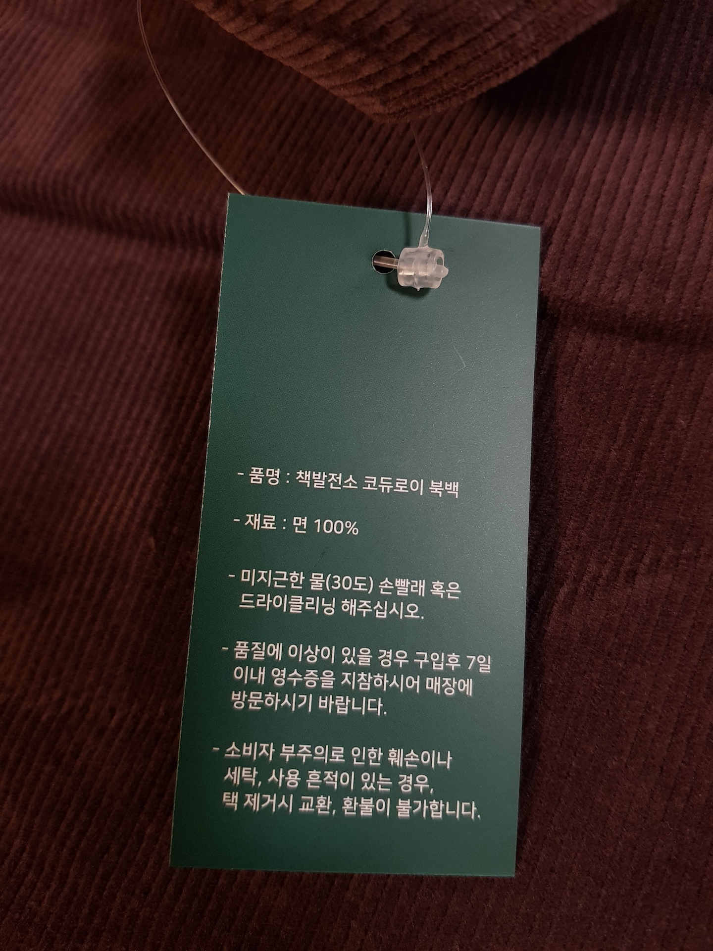 당인리책발전소의 자체개발 에코백, "코듀로이 북백"
