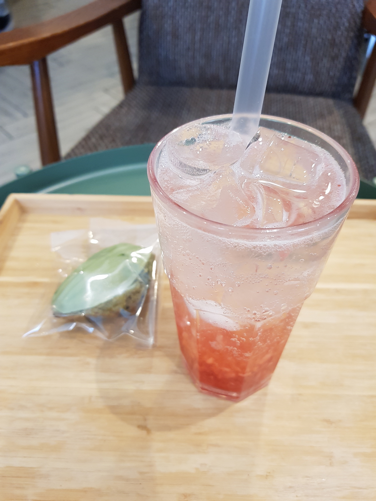 딸기에이드와 녹차 마들렌을 먹었어요.
