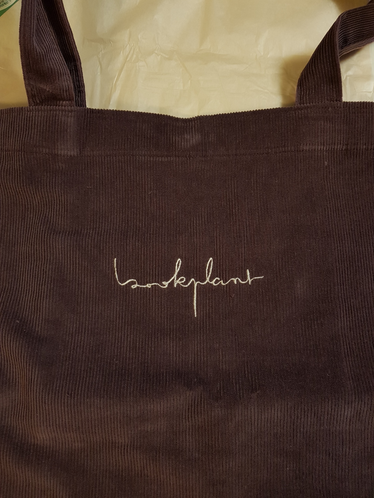 bookplant 글씨가 자수로 쓰여있습니다.