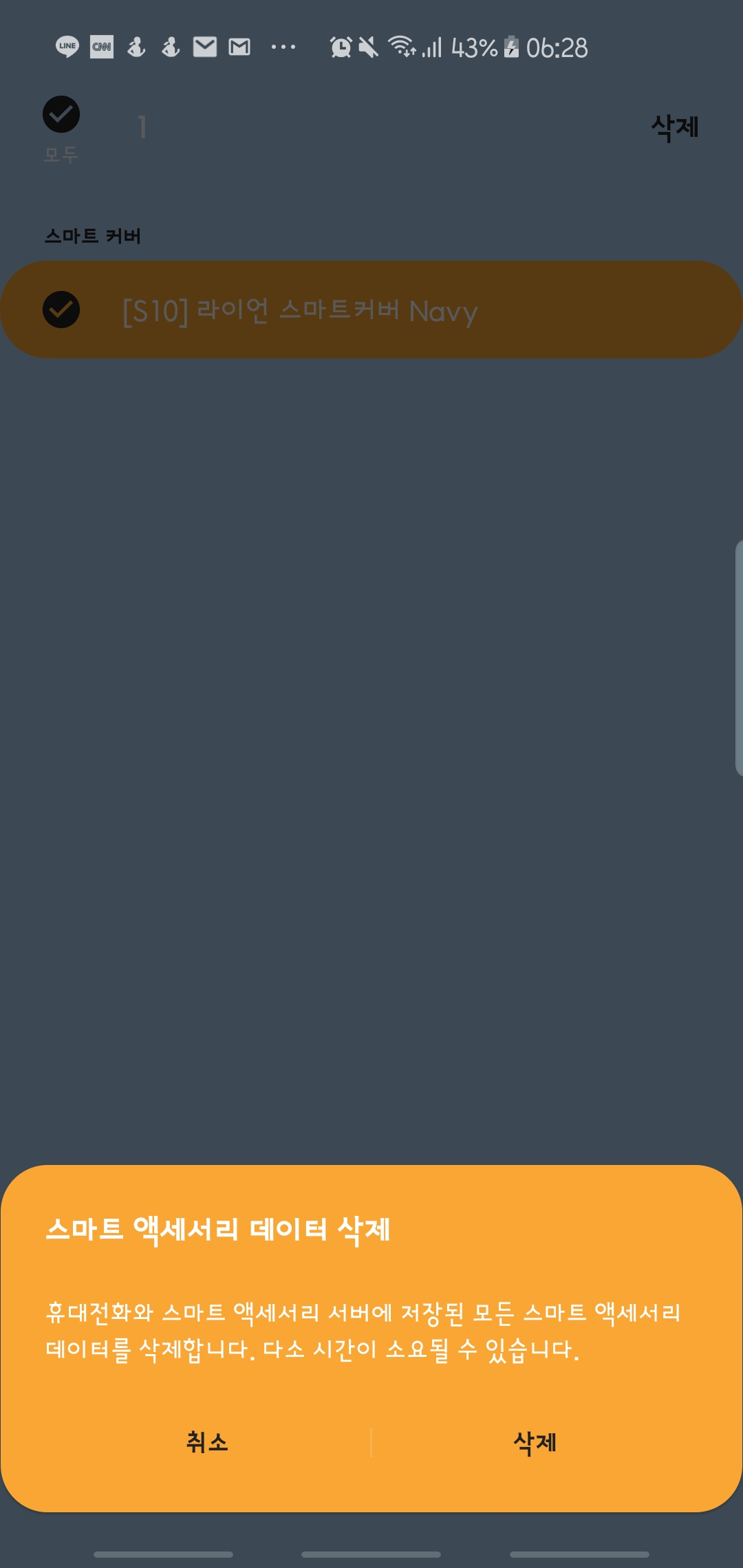 위에 보이는 저 케이스입니다. 스마트 케이스로, 케이스를 장착하면 카카오 테마가 적용됩니다!