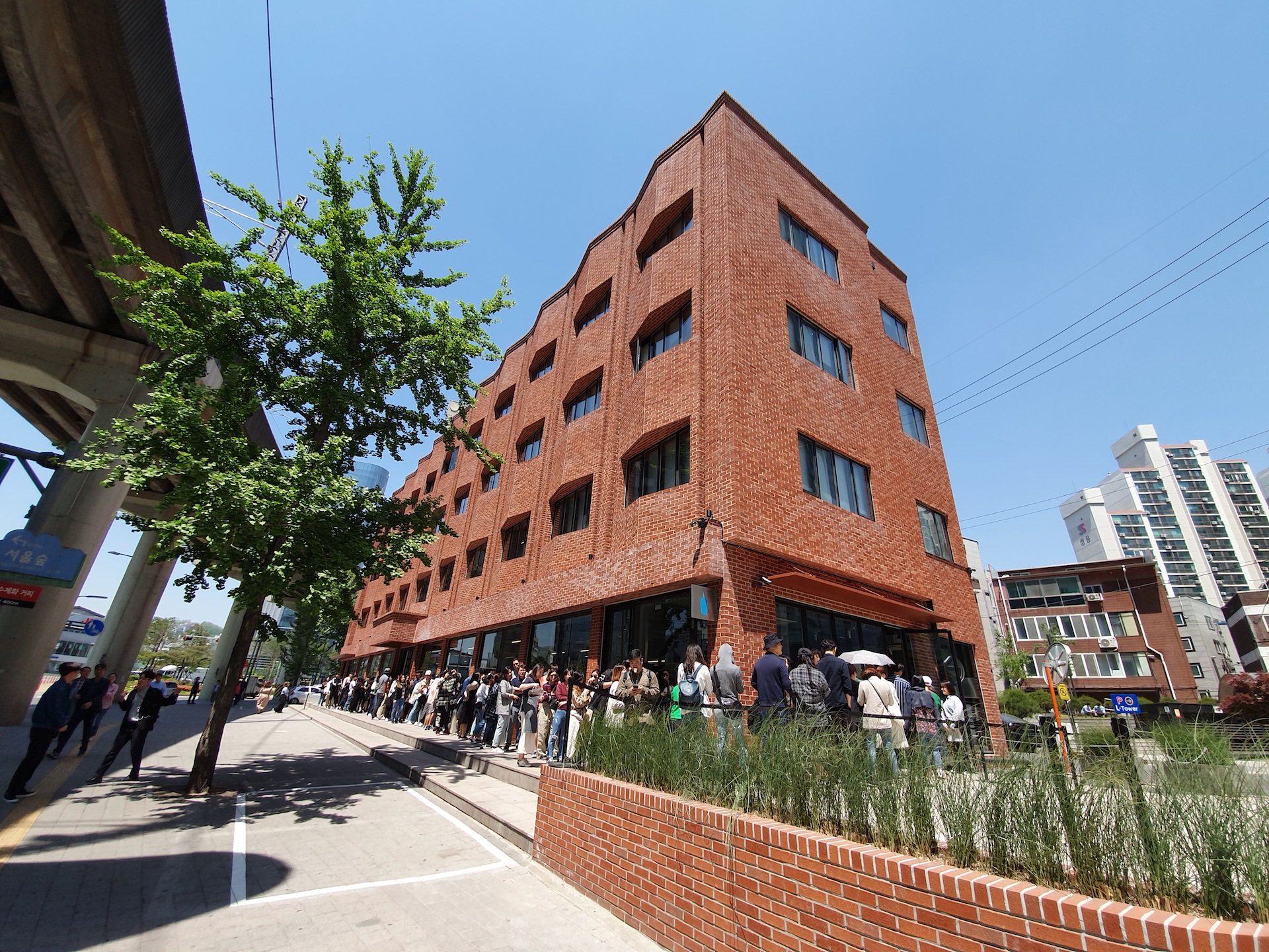 다른 각도에서 보면 이렇습니다. (건물 안 대기줄에서 본 모습)