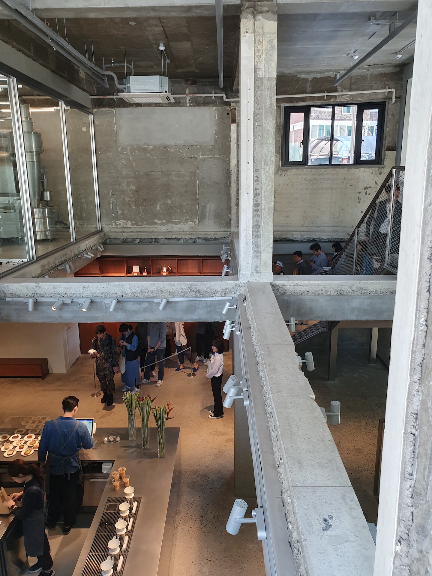 로스팅 기계가 1층에 있고, 지하 1층이 매장이에요.