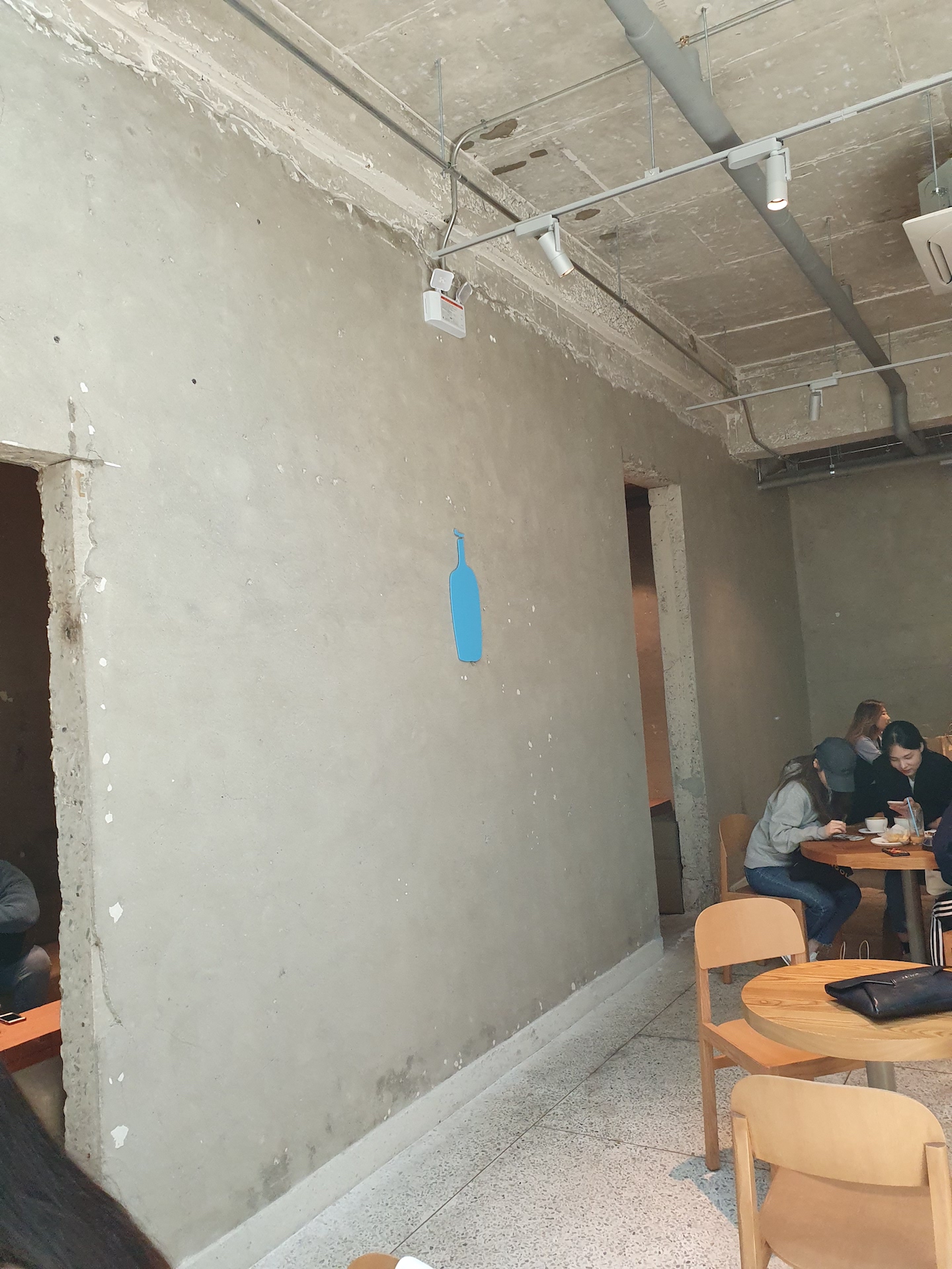 한쪽 벽면에는 이렇게 블루보틀 로고가 있어서 사진 스팟으로 잘 쓰입니다(?)