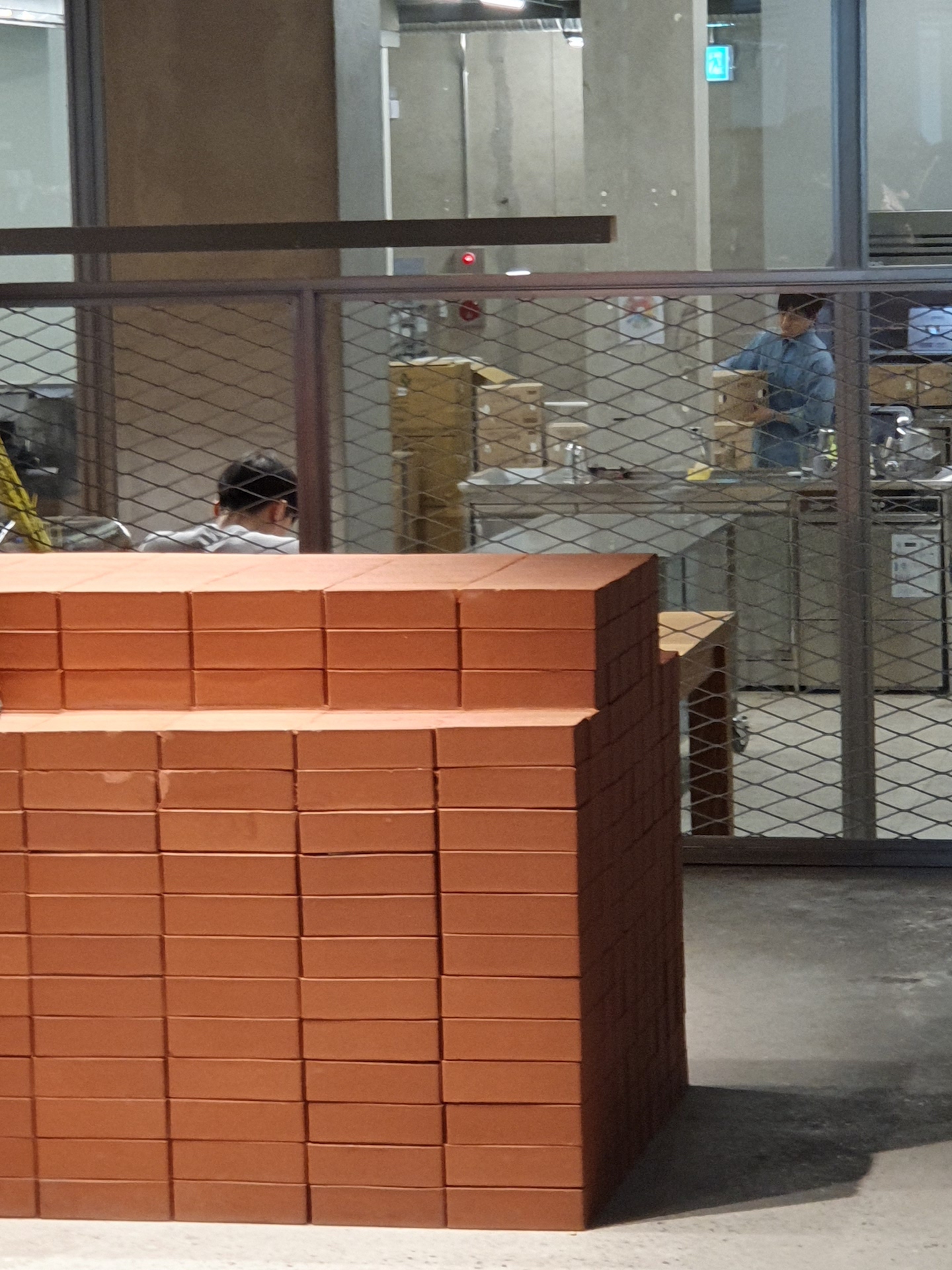 매장 내에 데코처럼 있는 붉은 벽돌...