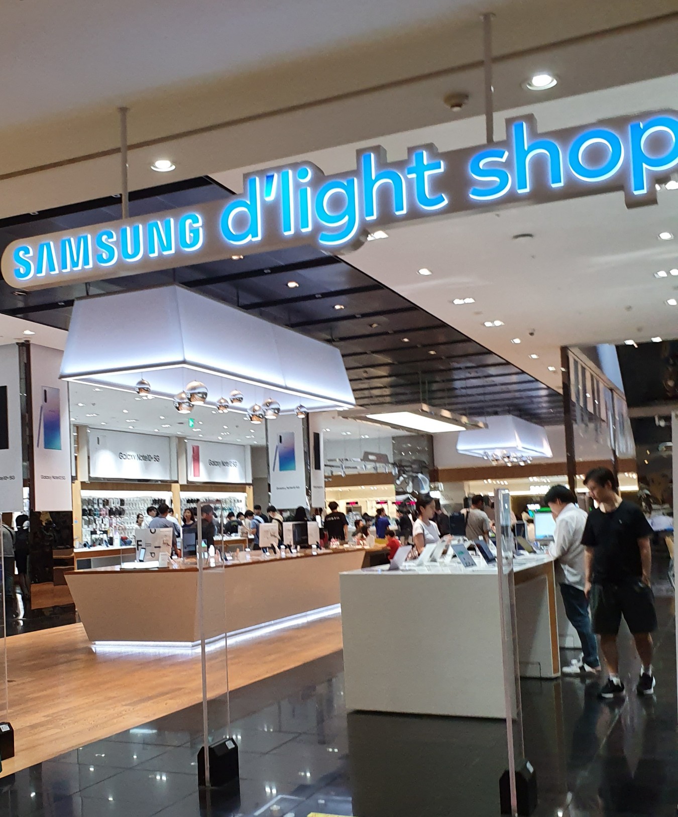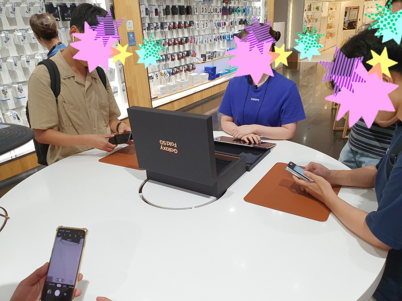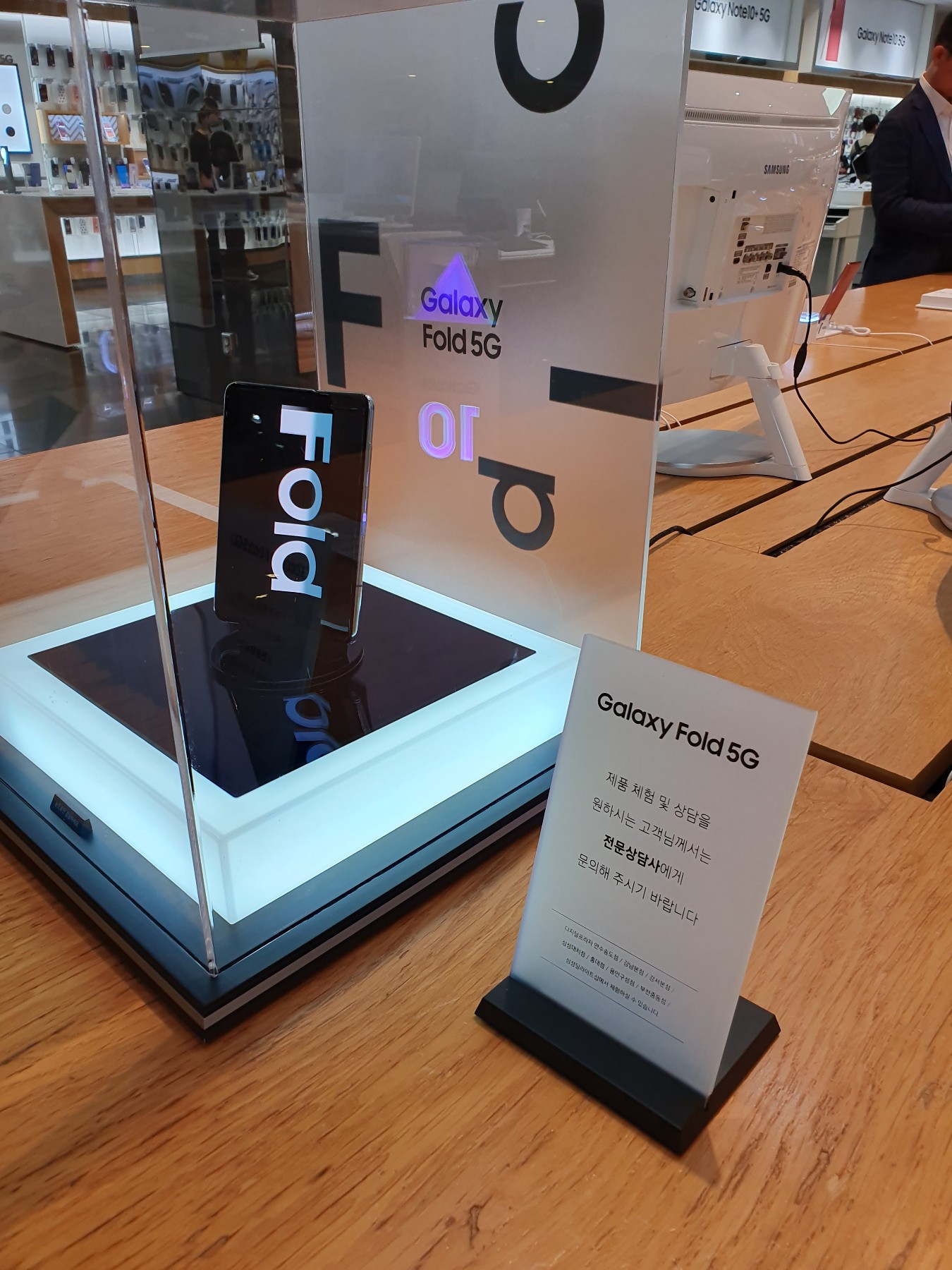 지문이 많이 묻어서 그런지, 매번 직원이 지문 닦고 나서 체험용 갤럭시 폴드를 건네줍니다.