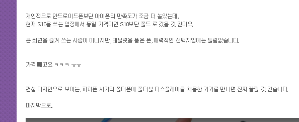 "피쳐폰 시기의 폴더폰에 폴더블 디스플레이를 채용한 기기를 만나면 진짜 끌릴 것 같습니다."