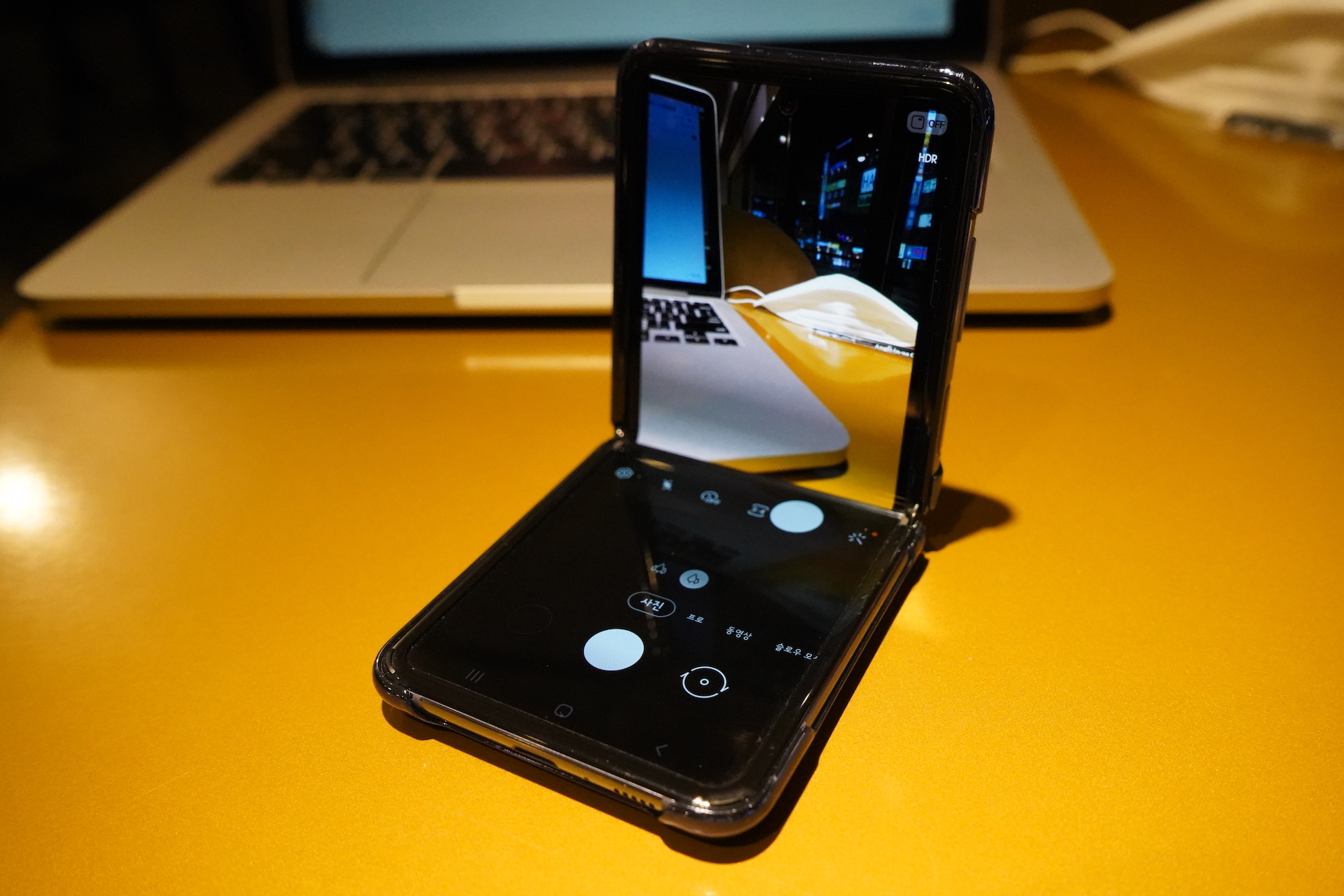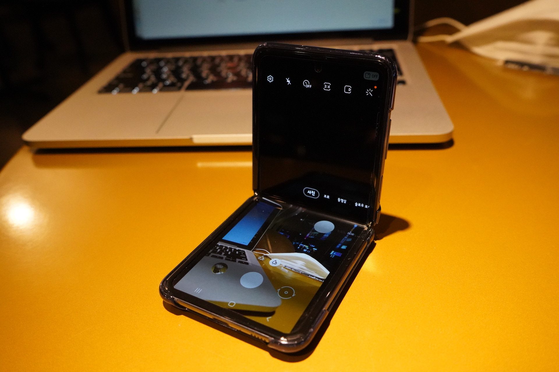 개인적으로 Z플립의 최고의 기능이라고 하면, 접은 상태의 카메라입니다. 원하는 각도를 마음대로 설정하고 세워두고 찍을 수 있습니다.