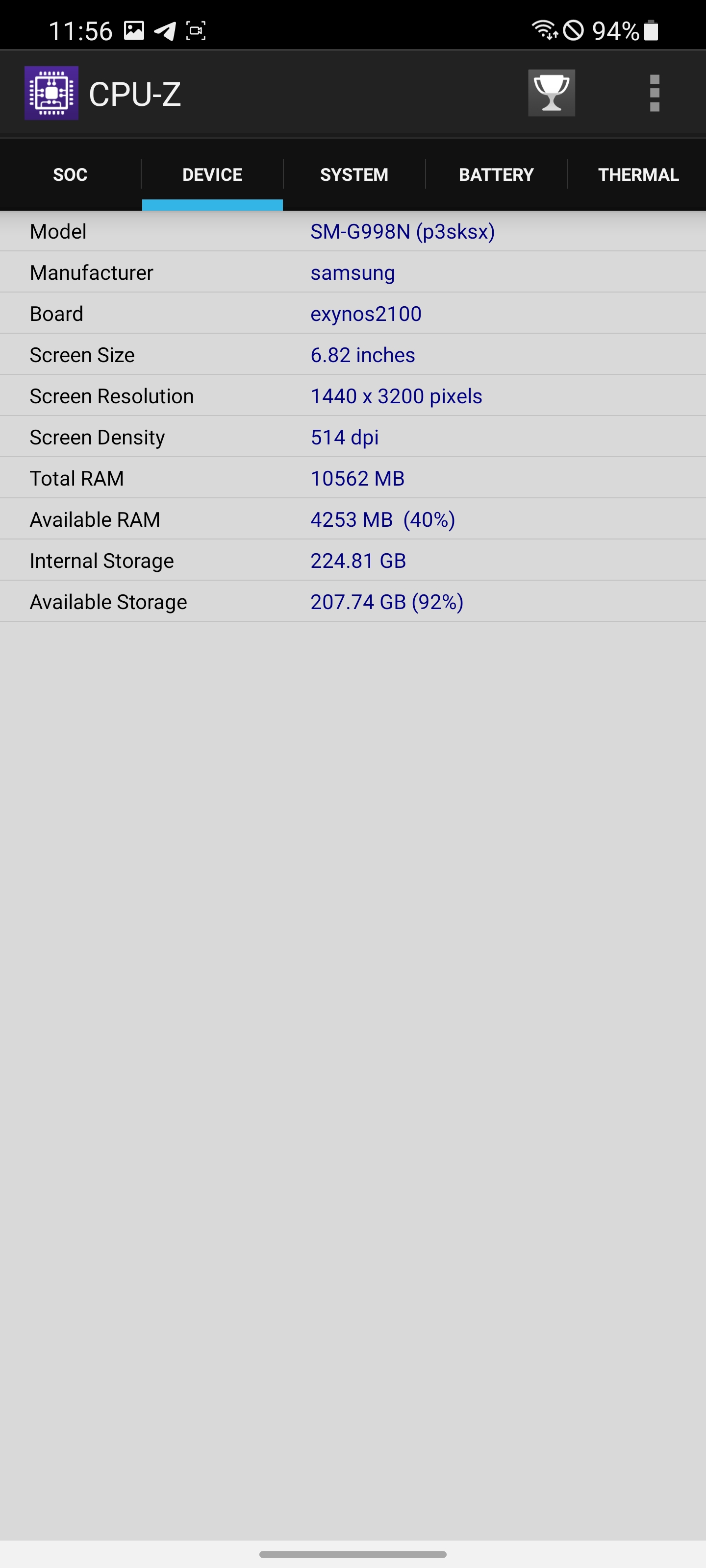 엑시노스 2100 탑재, 램 12기가를 확인할 수 있습니다.