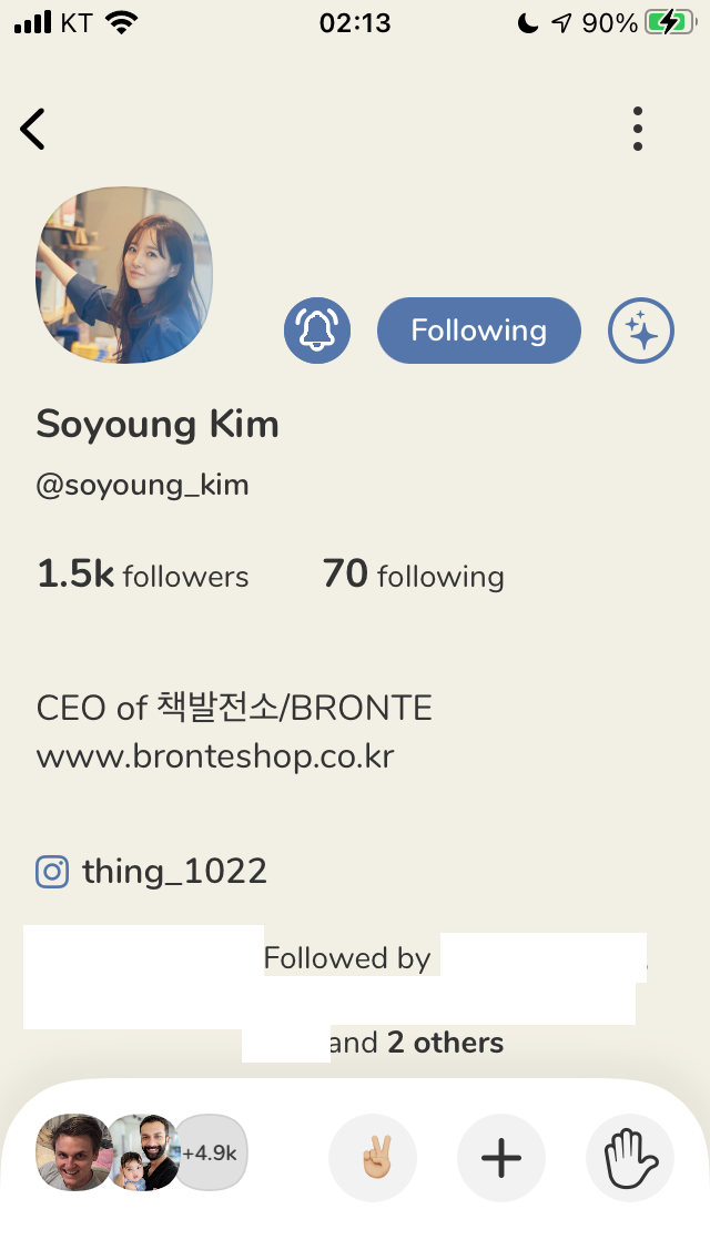 책발전소/BRONTE 사장님 김소영님의 프로필을 예시로 들면 이렇게 되어 있습니다.