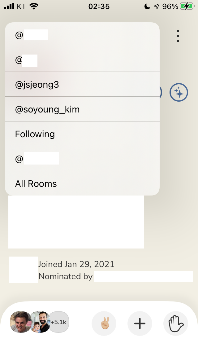거의 모든 사람이 이(Nominated by)것이 뜨고, 쭉쭉 따라갈 수 있는데, 최종적으로는 Clubhouse의 개발자 / 설립자 / 투자자 까지 올라가는 편입니다.