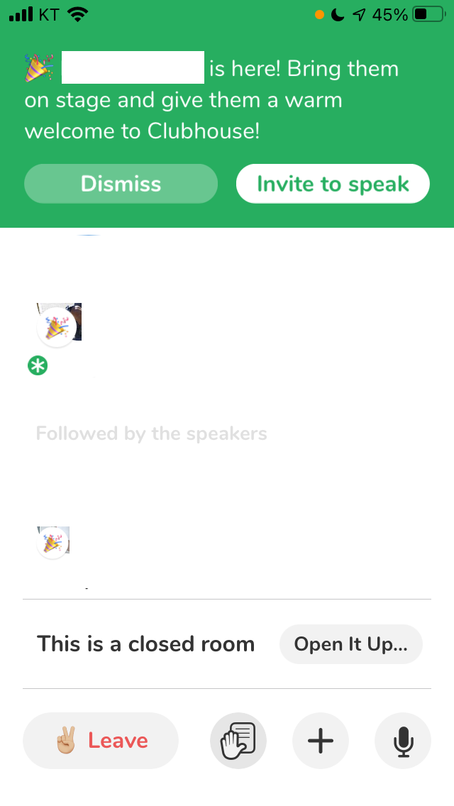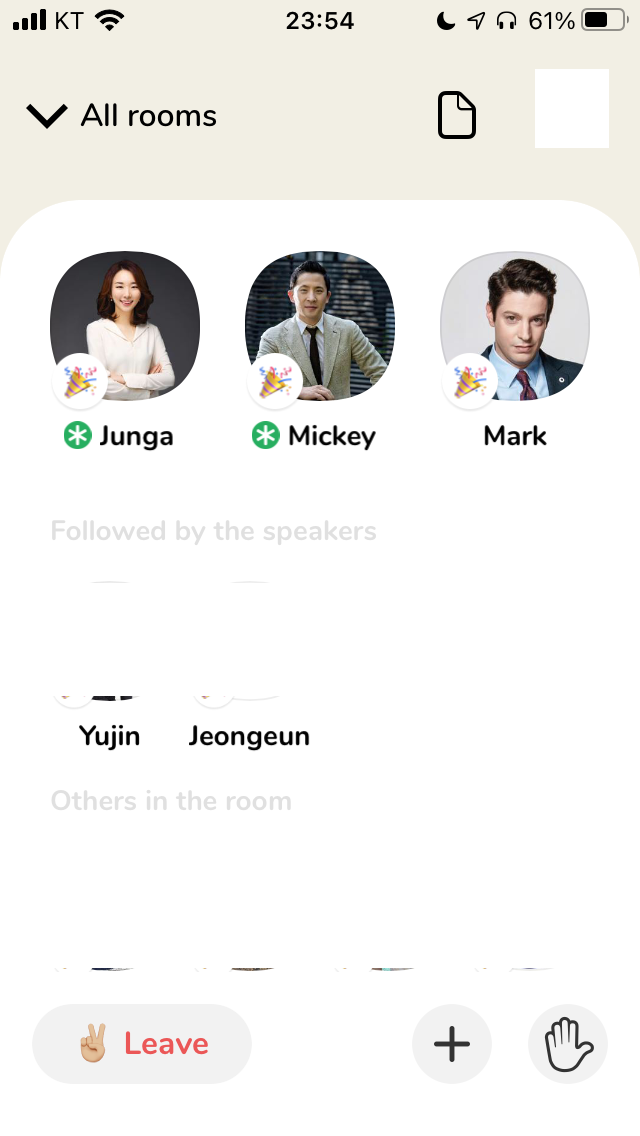 그리고 주로 내 친구 / following 이 참석하는 방이 위에 뜹니다. 가만 보면 꼭 Speaker나 Listener 목록에 있을거에요.
