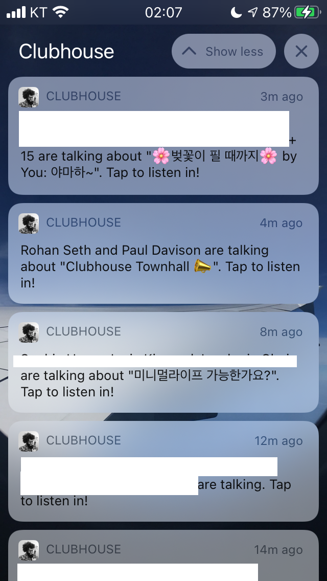 아, 매일 밤 9시 반에 '클럽하우스 신입생 환영회'라고 한국인들 위주로 환영해주는 모임이 있으니 부담없이 들어가보시면 체험해보기 좋은 것 같아요.