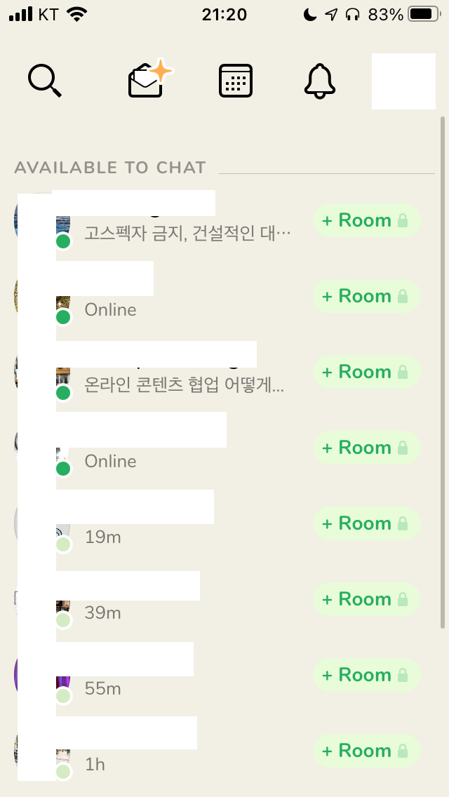 하지만 모르는 사람과의 대화이므로 본인 소개로 시작하거나, 프로필을 보고 시작하는 편이기에 프로필을 잘 써놓긴 해야 할 것 같아요.