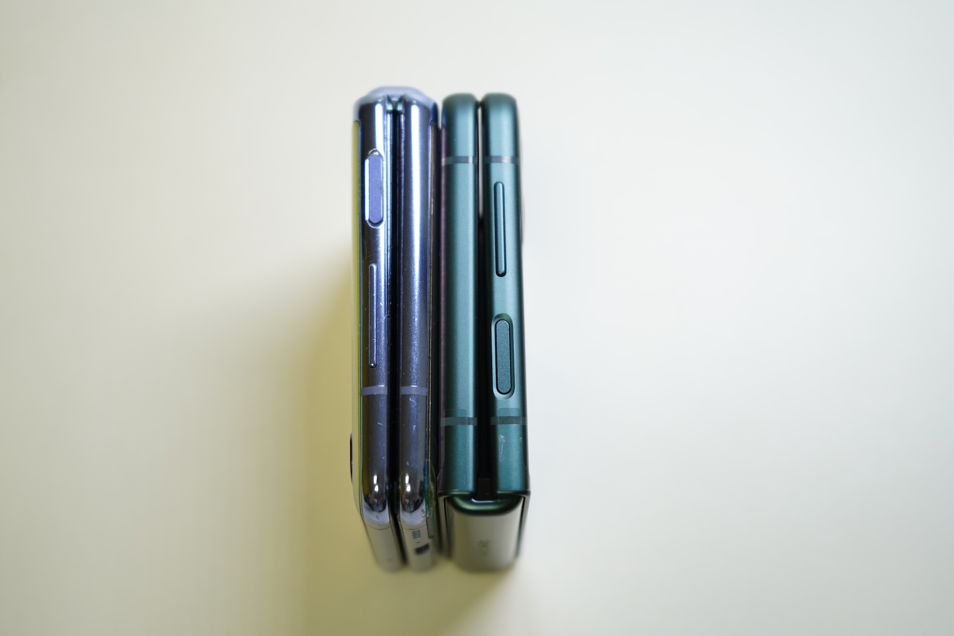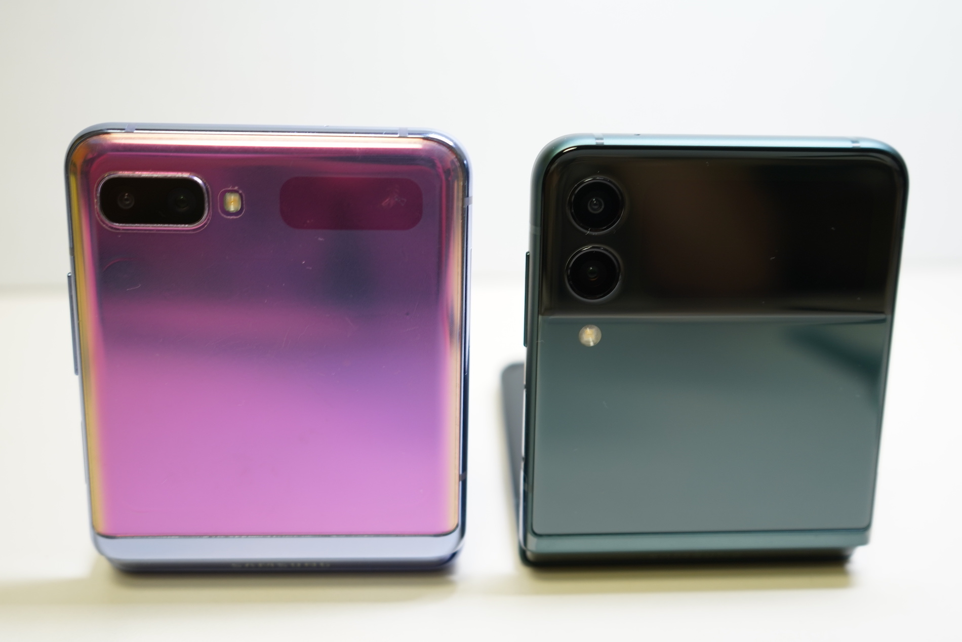전반적으로 보면 Z플립 1세대는 둥근 디자인 + 두꺼운 베젤이라면, Z플립 3은 조금 각진 디자인 + 좀더 얇아진 베젤 입니다.