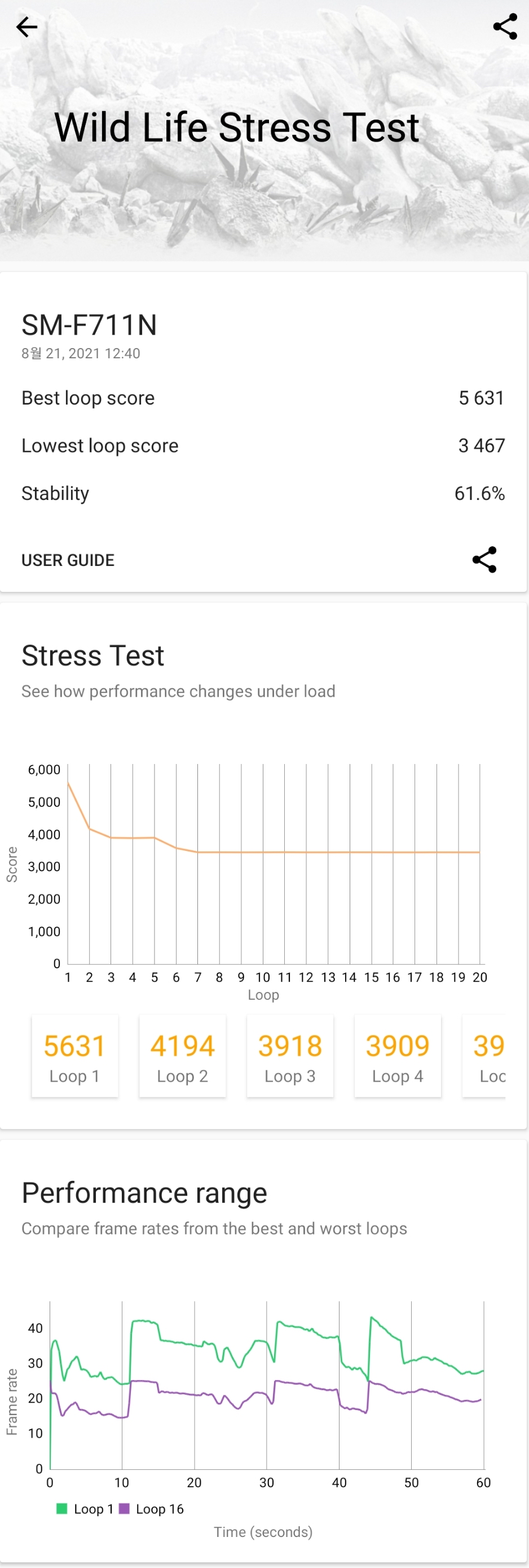 중간에 넘어갈땐 조금 차이 나던데, Wild Life 테스트 20번 하는건데 1회 테스트를 시간 단위로 끊는건지...