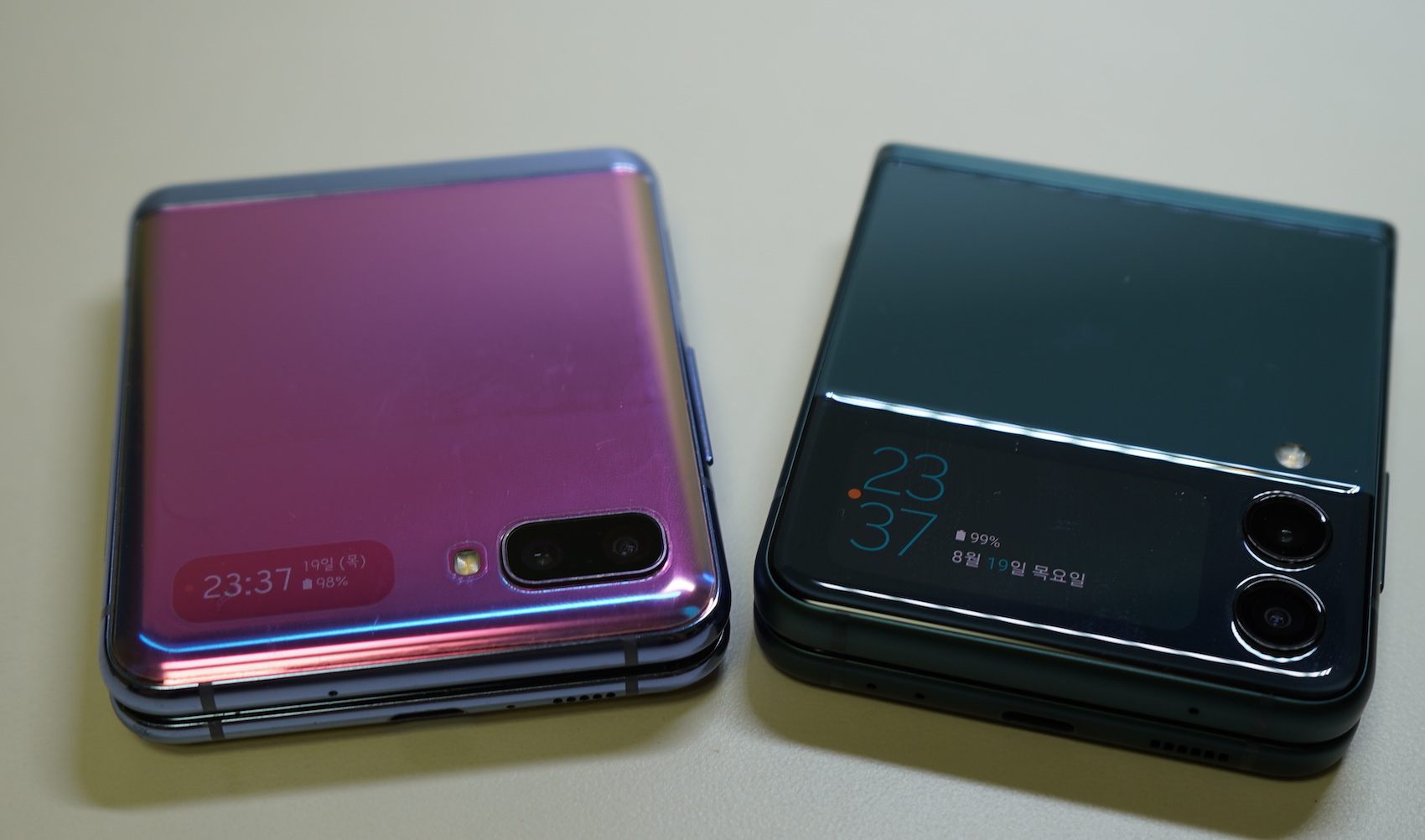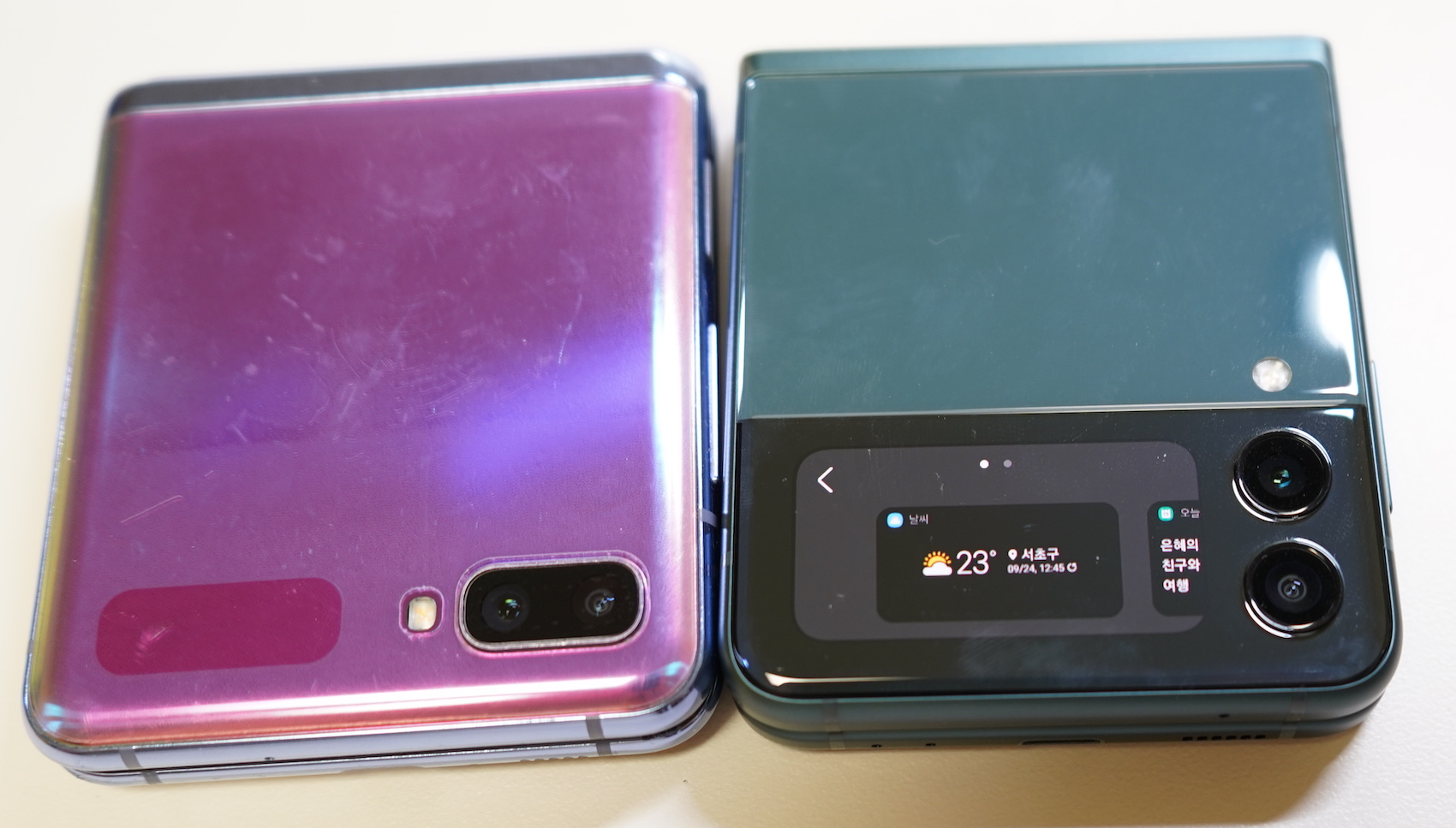 왼쪽이 Z플립, 오른쪽은 Z플립3.