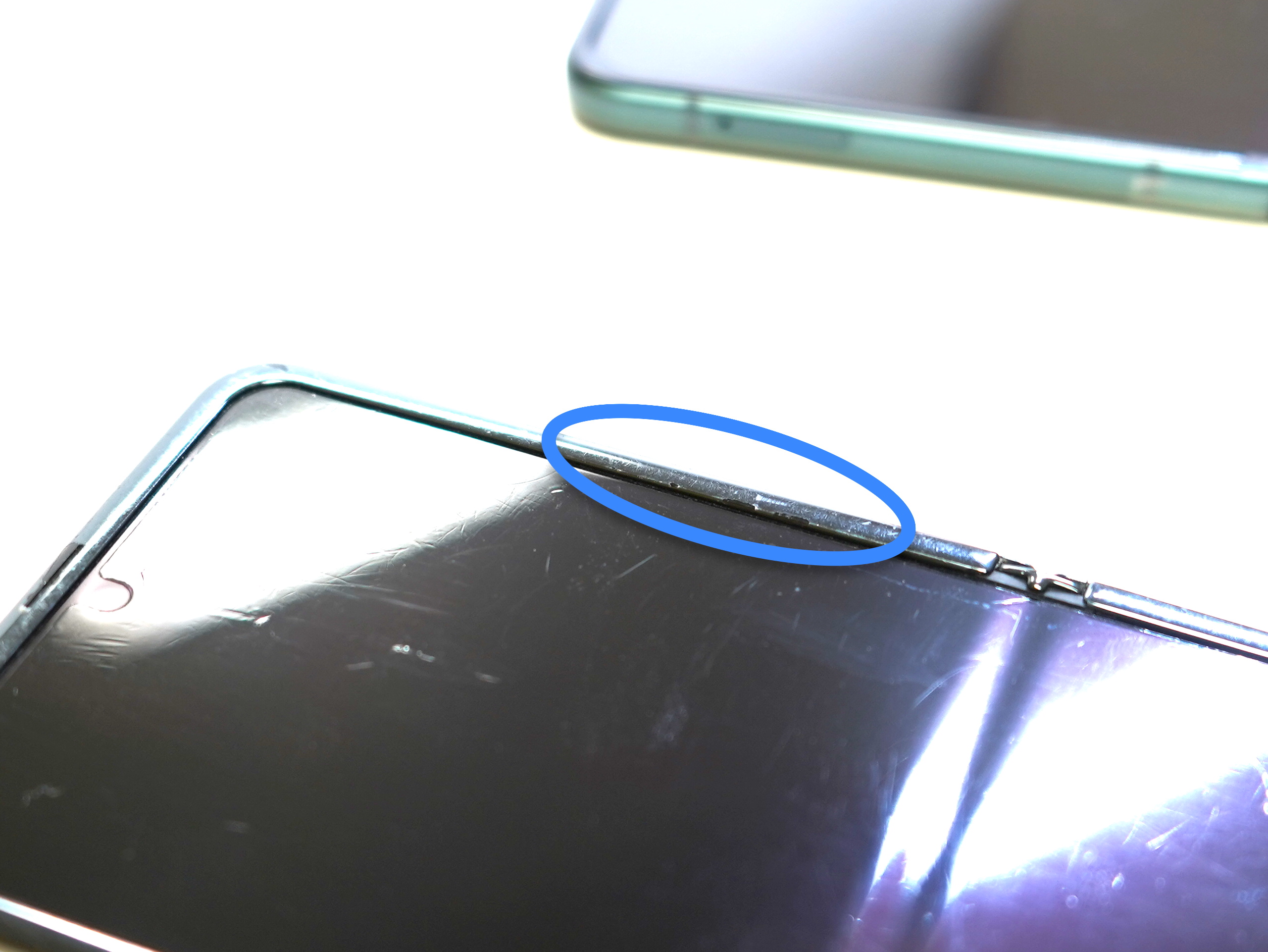 그와중에 Z플립은 상단 스피커쪽의 보호 베젤도 많이 긇혔네요.