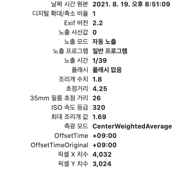 그리고 둘 다 그냥 서서 손으로 잡고 찍은거라 오차는 있을 수 있으나, 나머지 조건 (조리개, 노출 시간(셔터스피드)) 이 동일한데 ISO 감도만 다른 것을 볼 수 있습니다. Z플립이 조금 더 높은 ISO를 사용하네요. 그래서 두 사진 비교해보면 조금 더 밝아 보이네요.