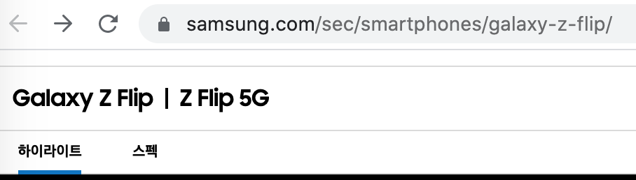 그래서 스펙 비교를 하려고 공식 홈페이지를 보니 Z플립은 스펙 페이지가 있는데요,