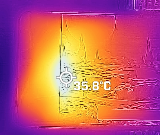 * 발열 확인에 사용된 카메라는 FLIR ONE Gen 3 열화상 카메라로, 스마트폰 USB-C 단자에 꽂아 사용하는 방식입니다.