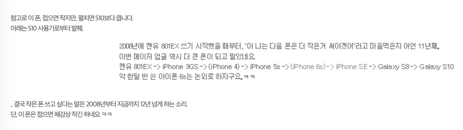 아무튼, 화면이 계속 커지는 현실에서, 최근의 제 핸드폰 구매의 기준은 결국 "크기" 아니었나 싶어요.