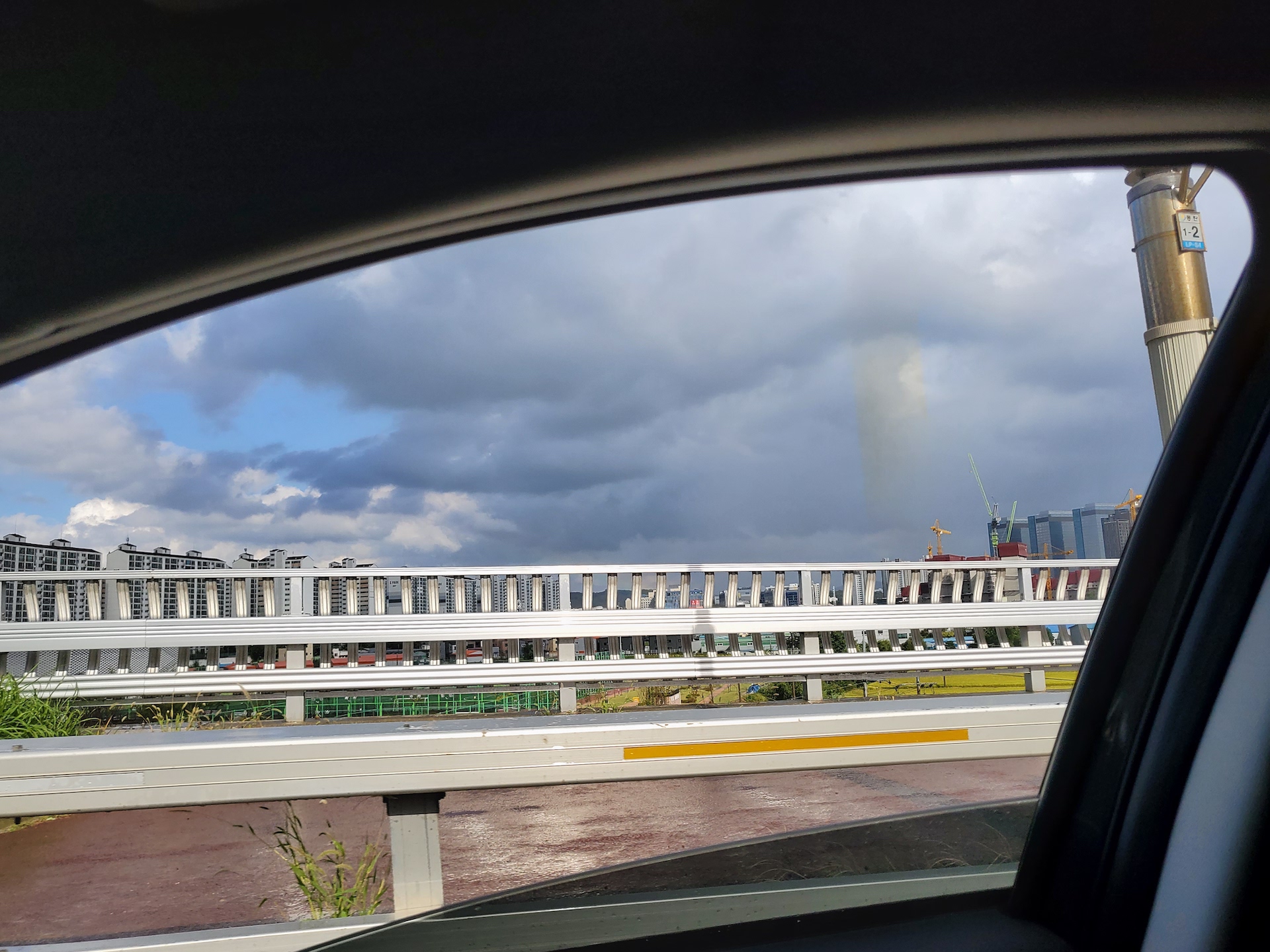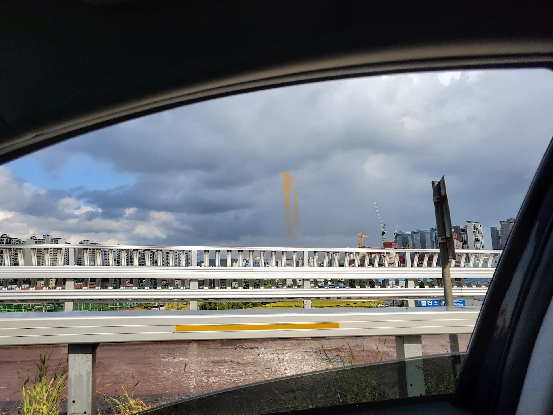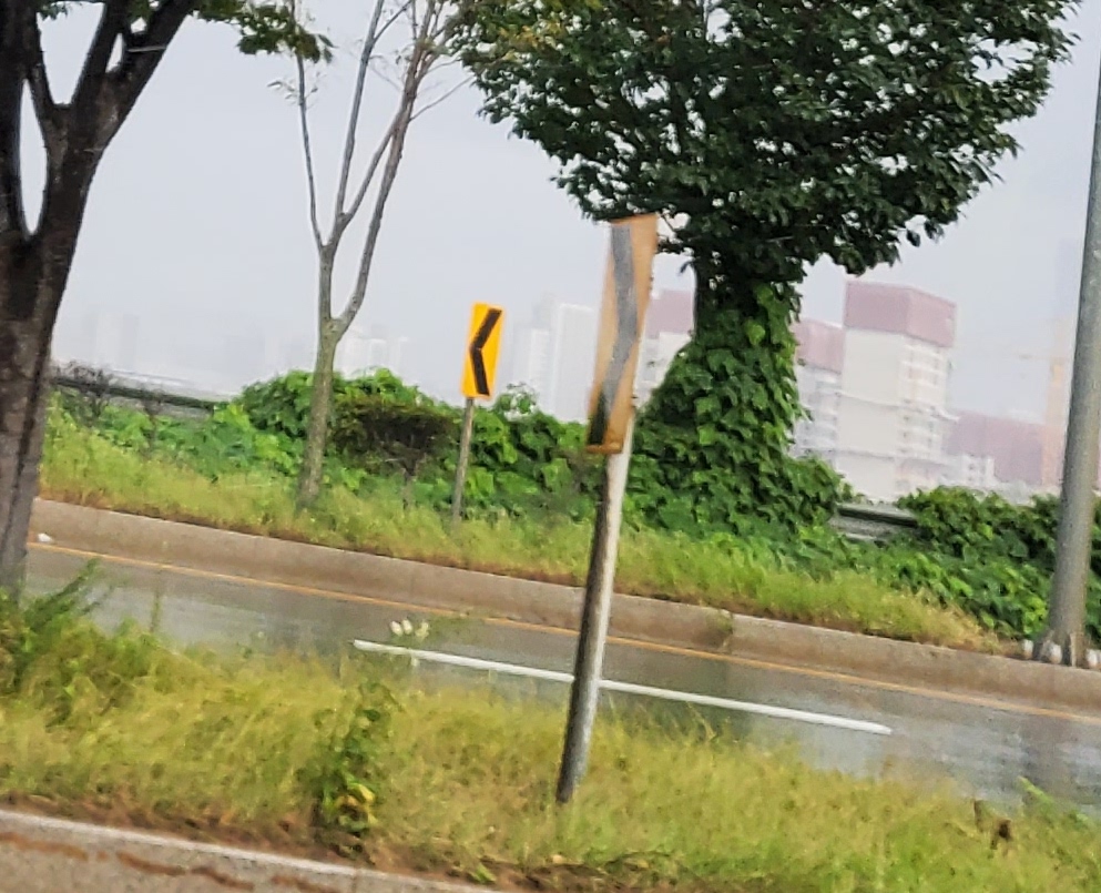 빠르게 지나가는 차 안에서 바깥을 찍은거지만, 노란색으로 중간에 없는 것이 합성이 된 것입니다.