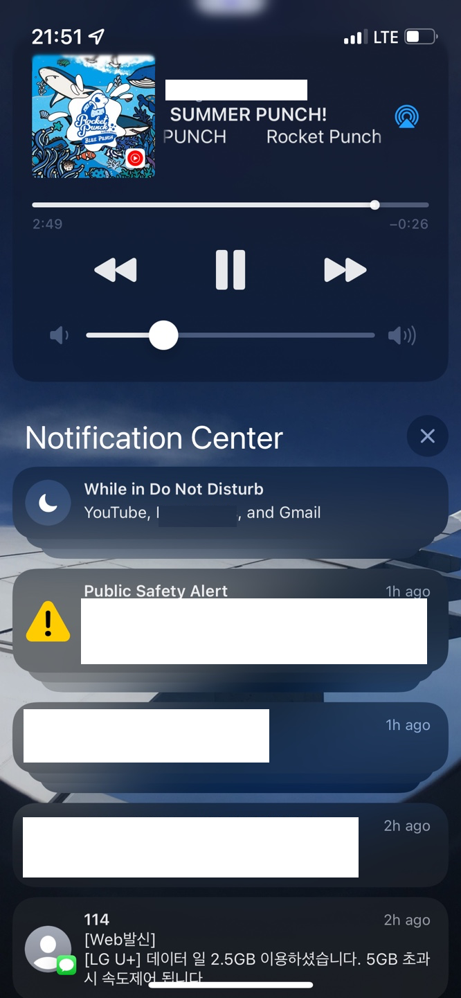 위 "While in Do Not Disturb" 부분이 Do Not Disturb 모드를 켰을 때 온 알림들이 모여있는 부분.