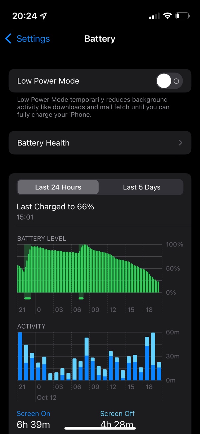 위에 Last Charged to 66% (15:01)은 무선충전 패드 연결 되나 잠깐 올려놨다 저렇게 되었네요.