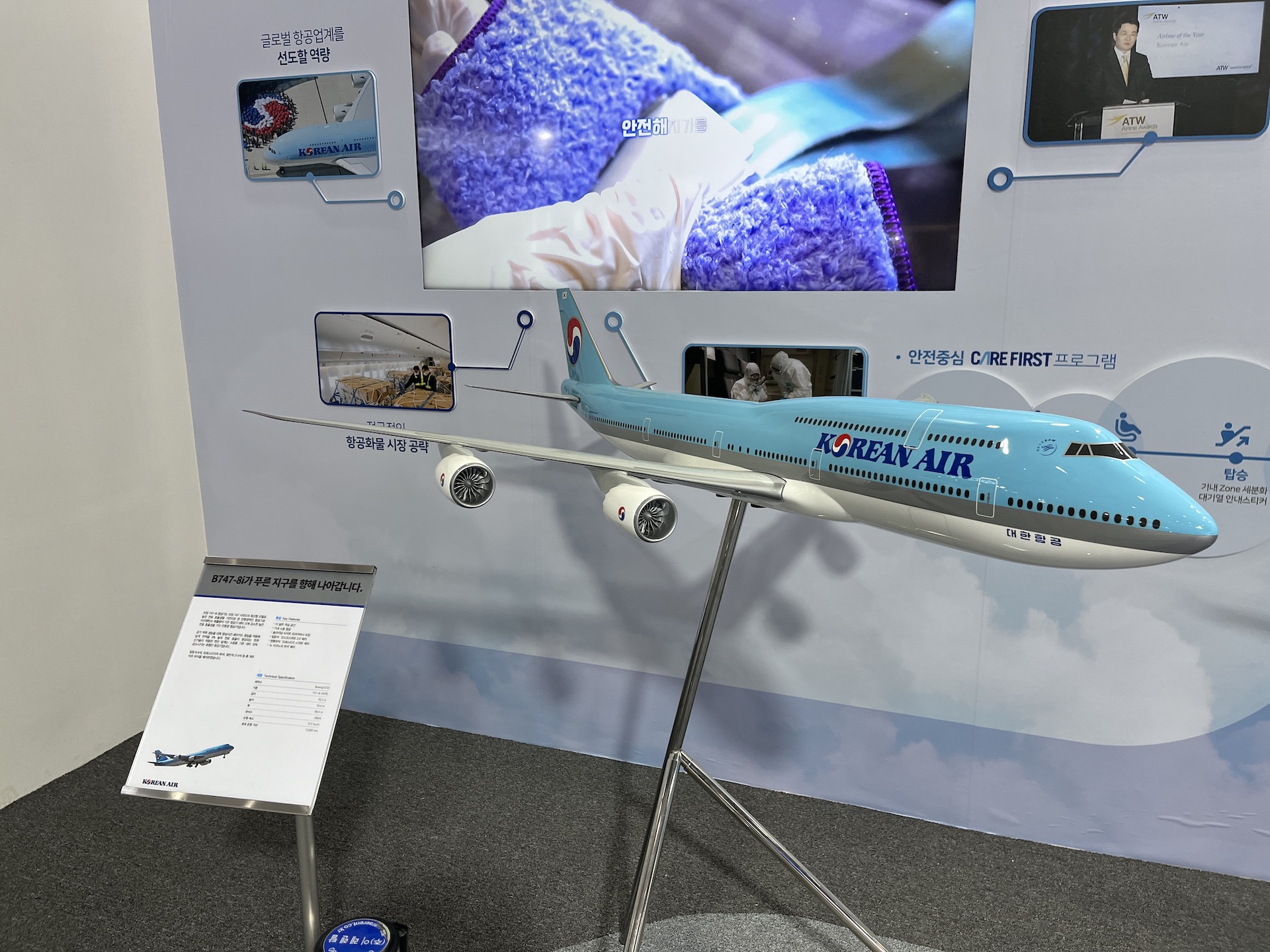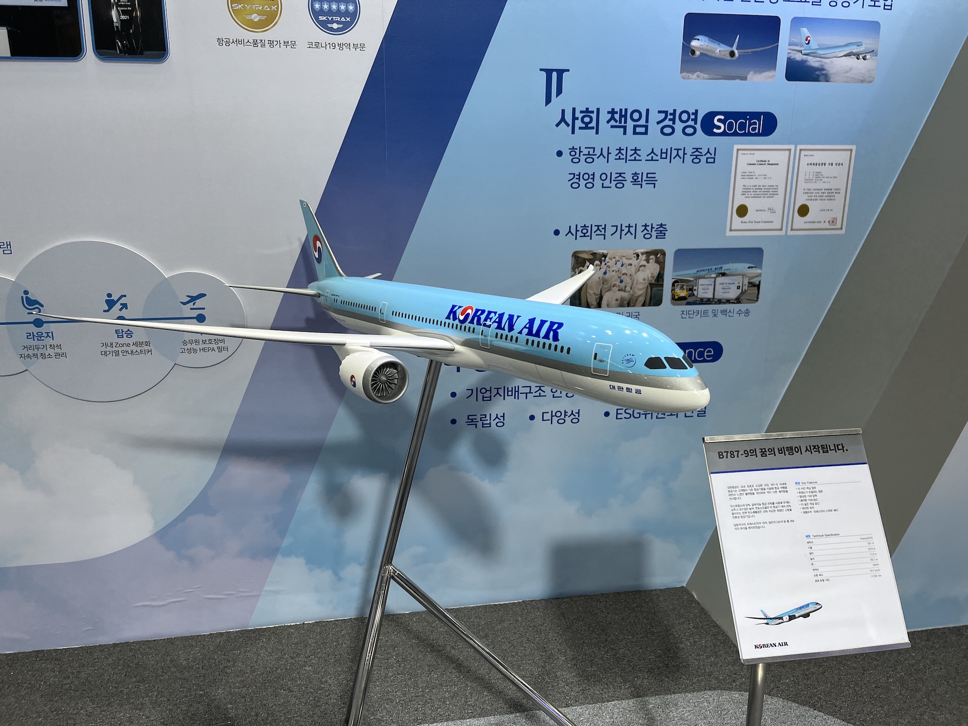 주력 보잉 항공기들 B787-9, B747-8i 모형 전시