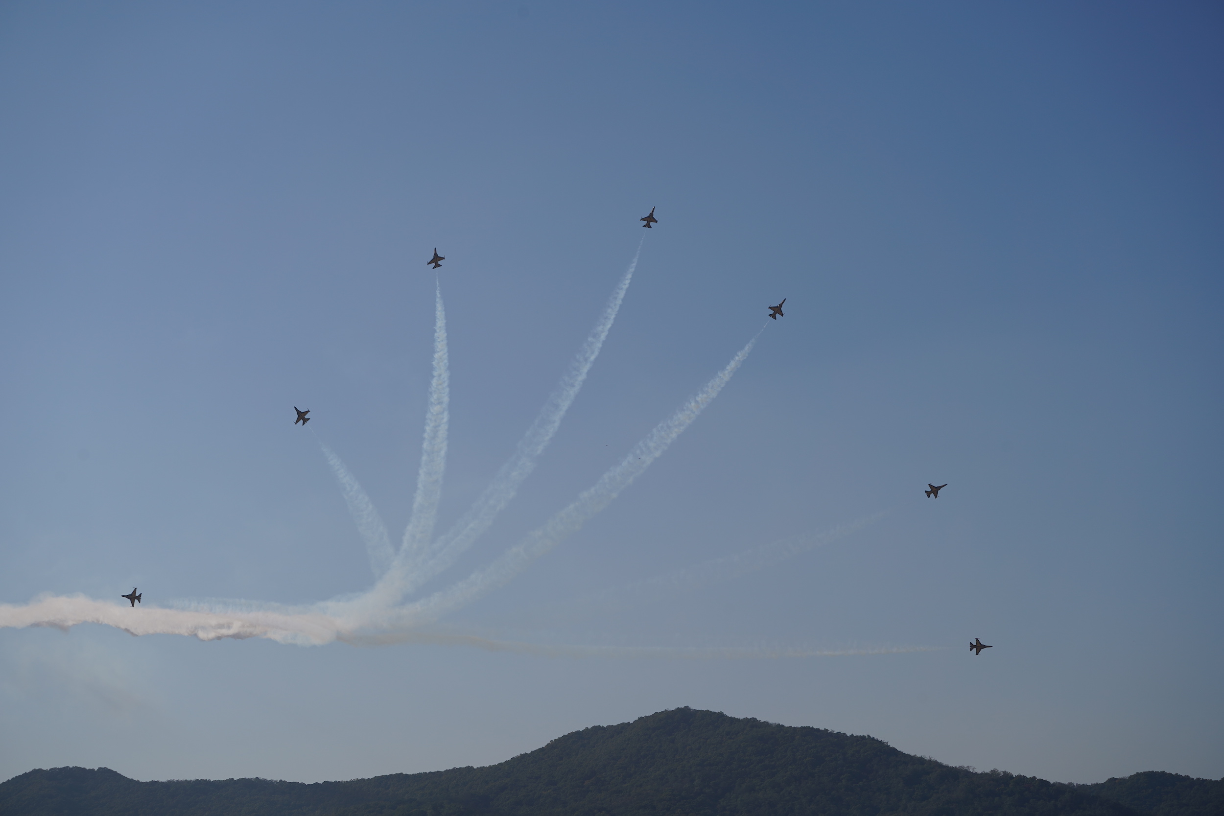 오늘의 하이라이트이자 마지막 비행인 블랙이글스 출격합니다.