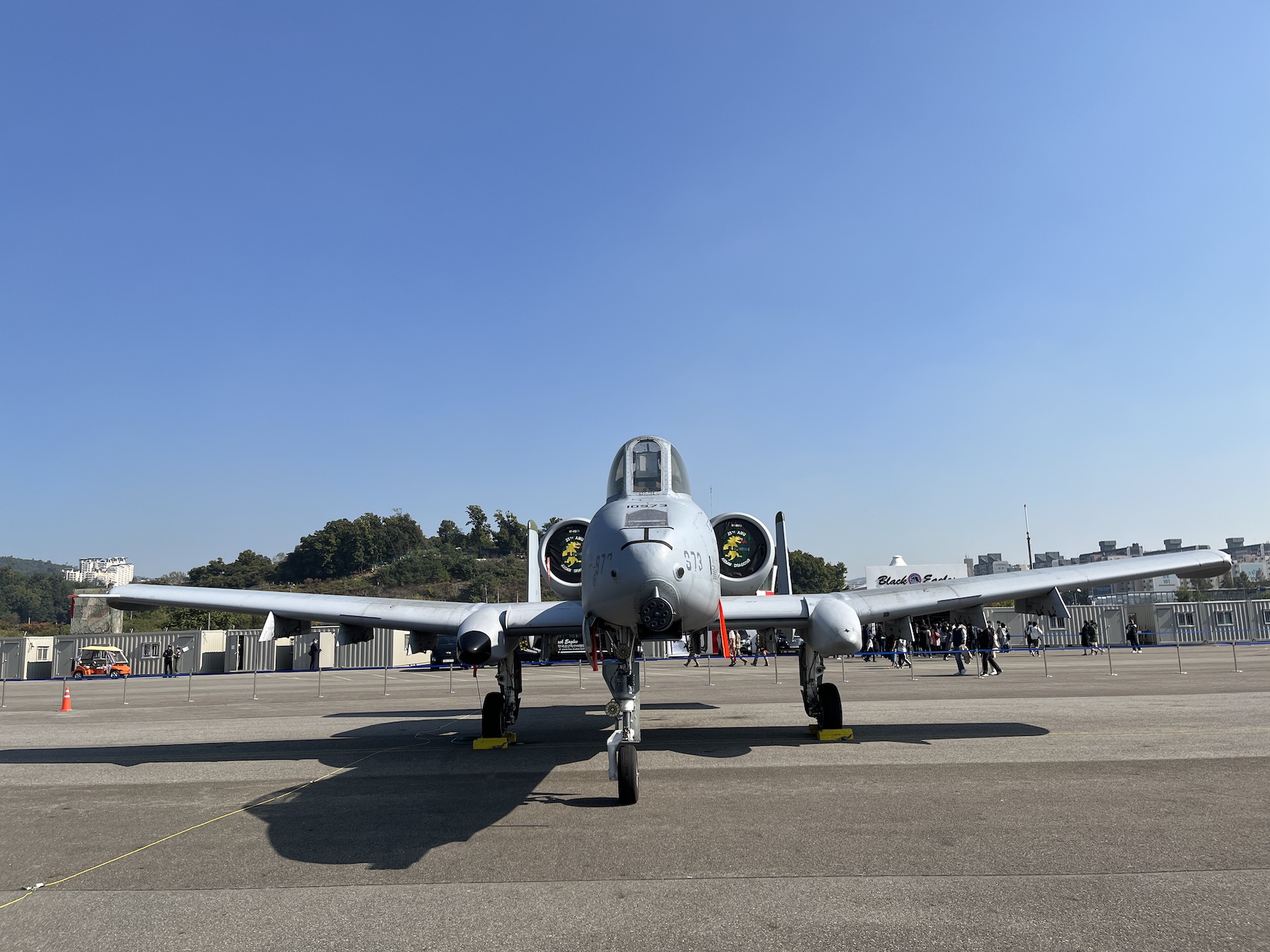 애초에 군사기지 내 공항이라 일반인이 여기서 비행기를 탈 일이 없으며, 이렇게 기지 개방 행사나 있어야 멀리서나마 구경할 수 있고요.