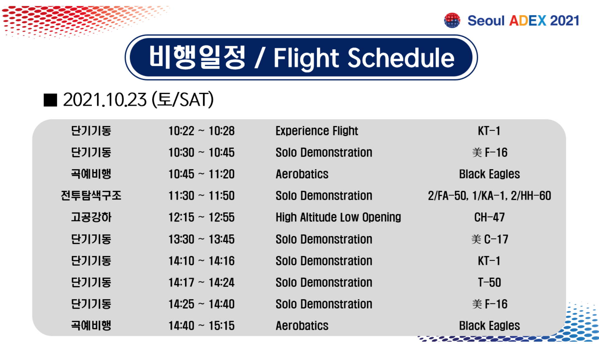 방송 들어보니 블랙이글스에서 두명인가가 오늘로 마지막 비행을 마치고 일반 전투기 조종사로 돌아간다는듯.