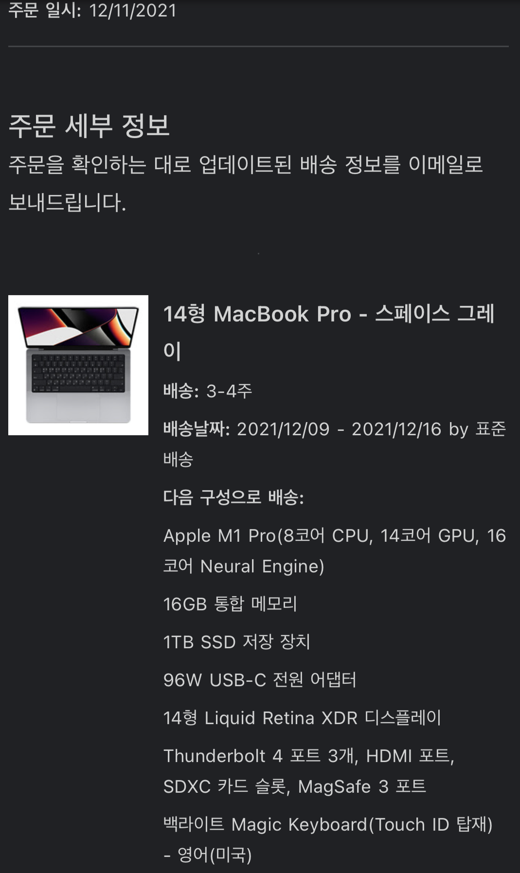 그래서 결론적으로 주문한 사양은 다음과 같습니다.