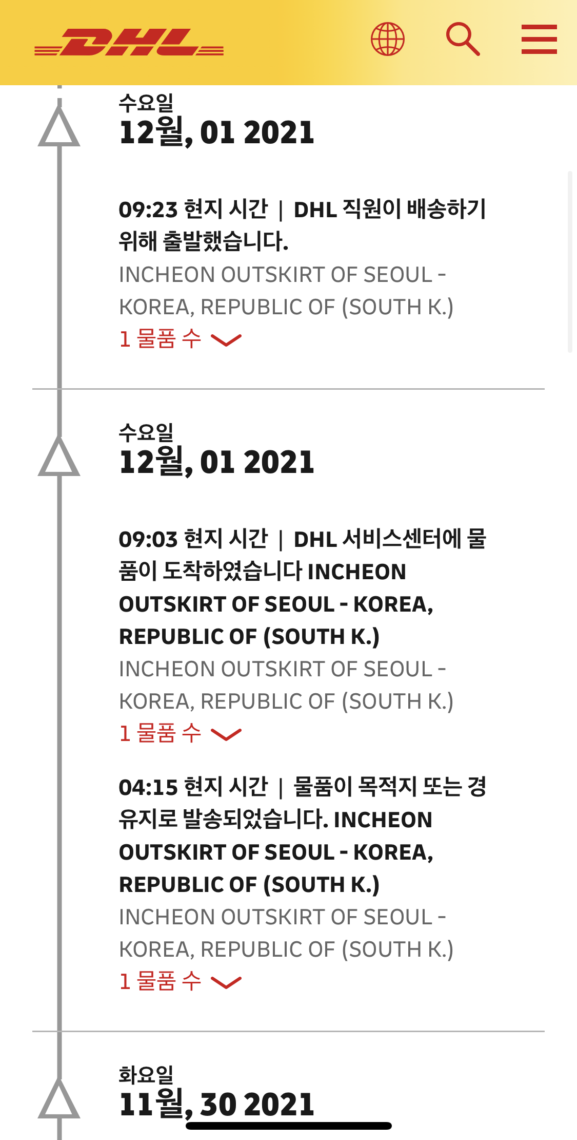 그러더니 12월 1일 낮에 배송이 완료되었습니다.