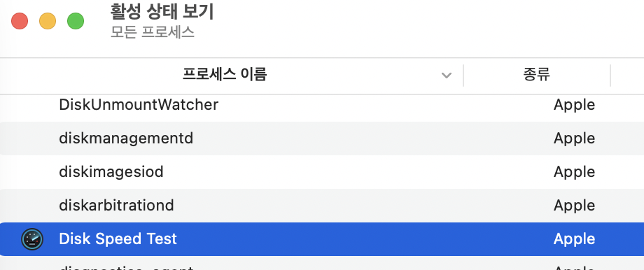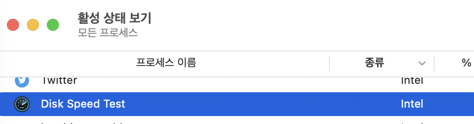 이를 확인하기 위해서는 "활성 상태 보기"(Activity Monitor)에서 "종류"라는 탭을 활성화해보면 확인할 수 있습니다.