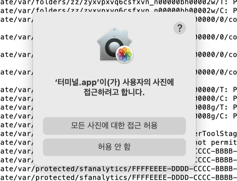 마치 아이폰에서 사진에 접근 허용 이런 것처럼, 주로 사진, 문서 같은 디렉토리에 최초 접근 시 이런 식으로 허용하는지를 물어보는 창이 뜹니다.