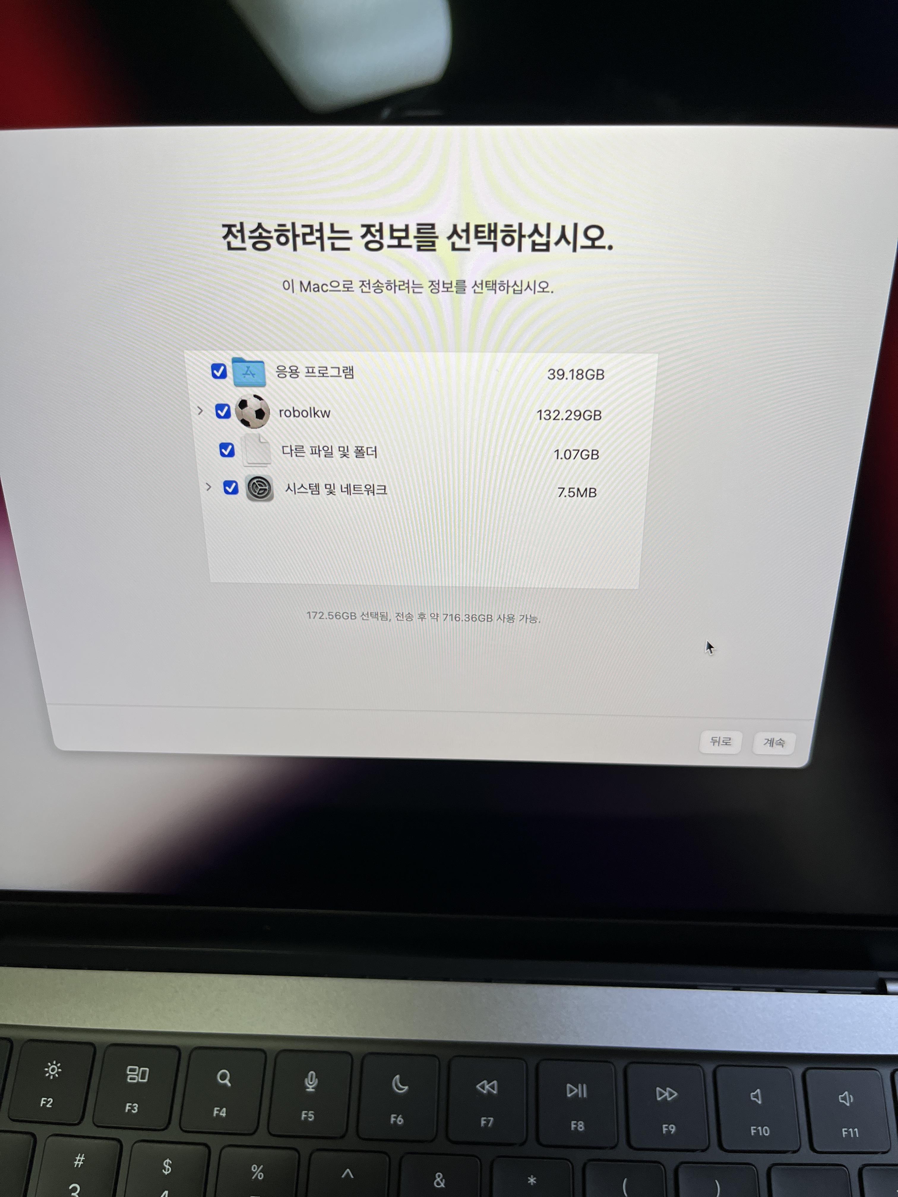 이 날의 저는 빠르게 데이터를 새 맥북으로 옮기는 것이 목적이므로,