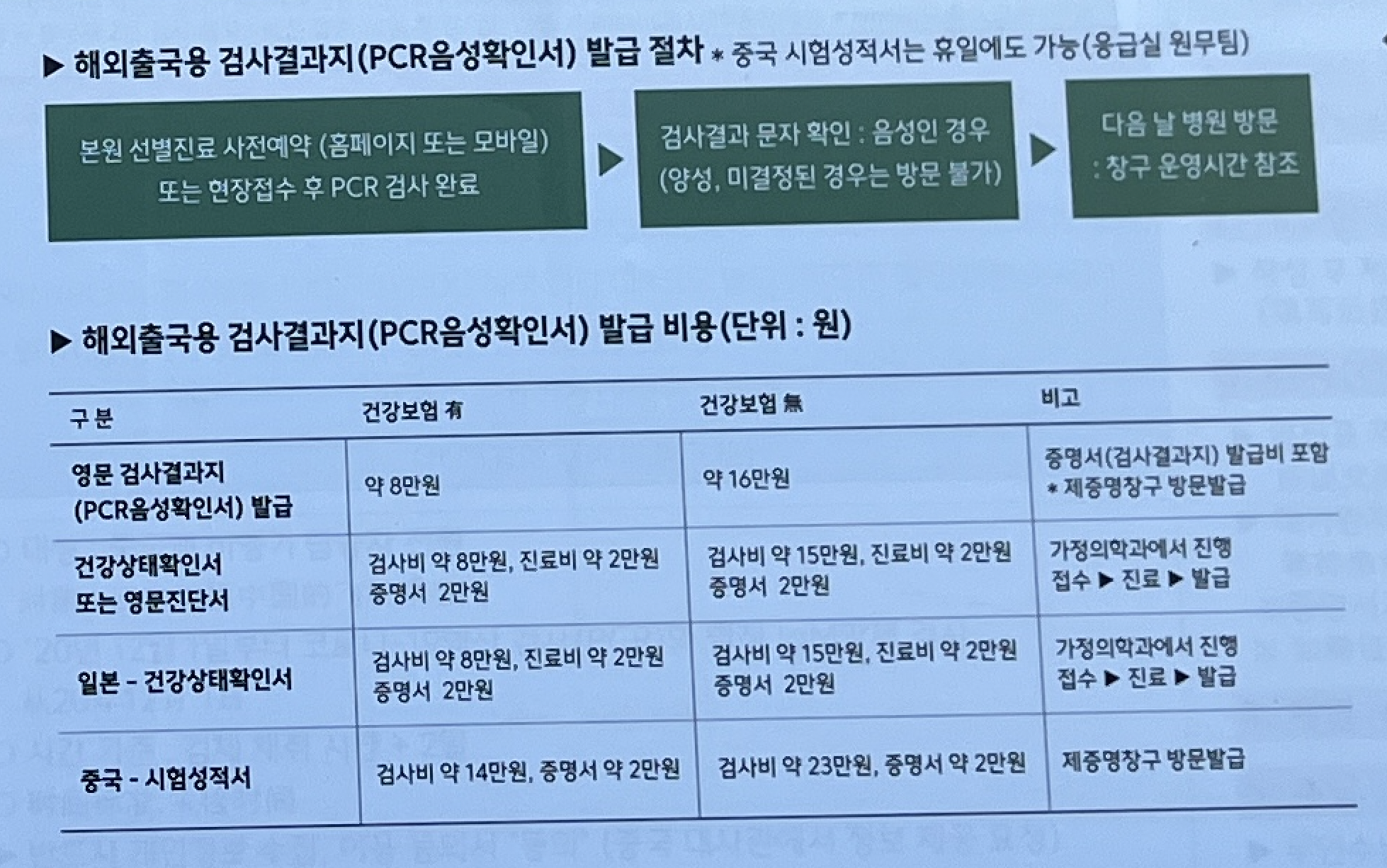 출국에 필요한 서류 발급을 위해서는 우선 검사 결과 음성을 확인한 이후에 가야하므로,