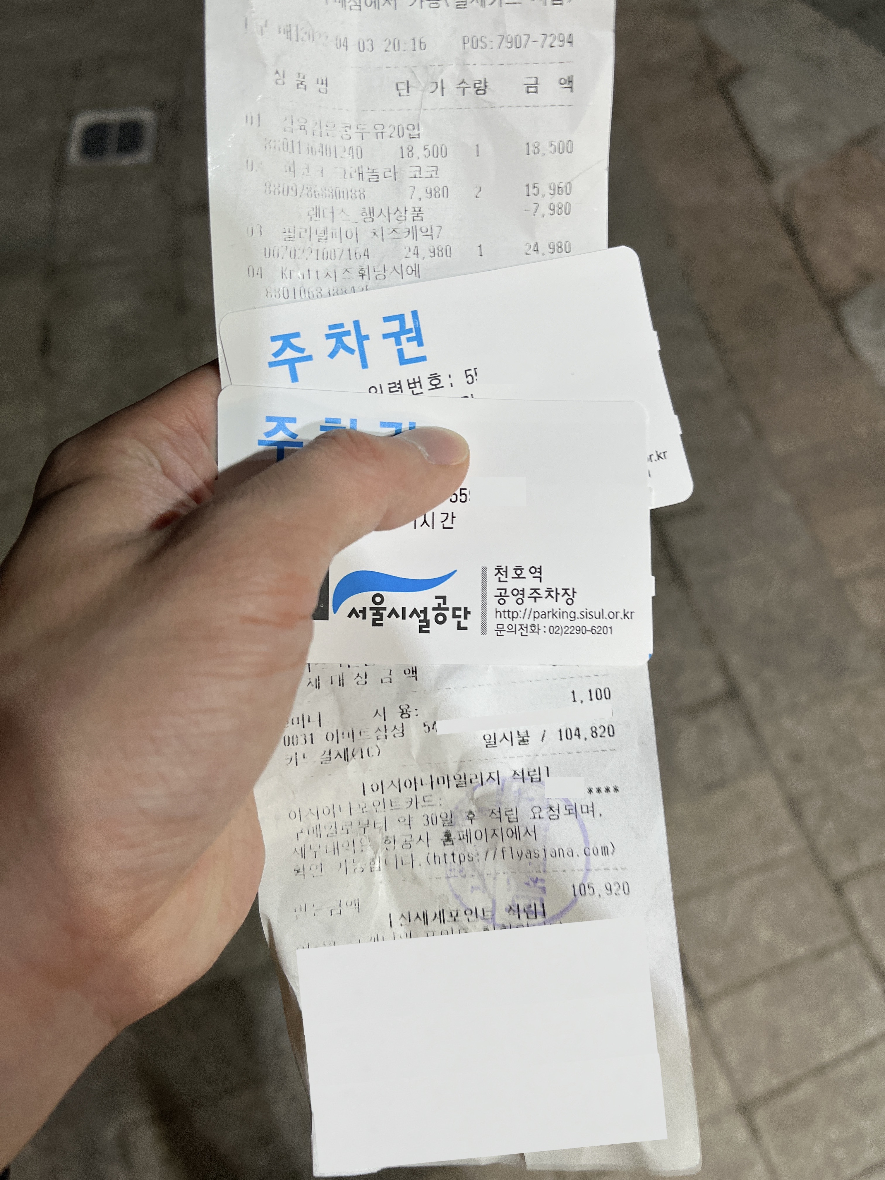 종이 영수증을 뽑아갔습니다만, 만약 앱 영수증을 제시했을 때 어떻게 주차권을 줄 지는 모르겠네요.