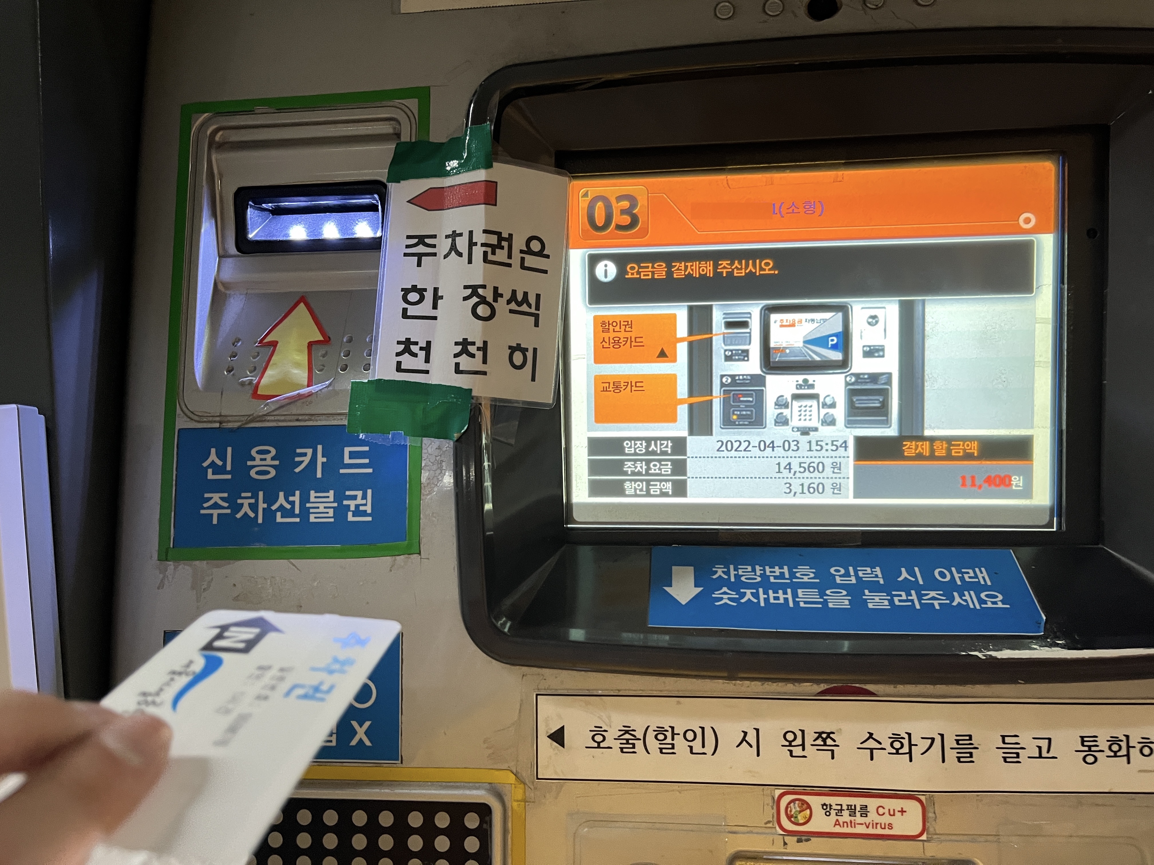 5분 260원 이면 1시간 3120원인데, 첫 장 넣는데 3160원 할인, 두번째 장 넣으니 +3100원 되어서 6260원이 할인 금액으로 찍히는데요,