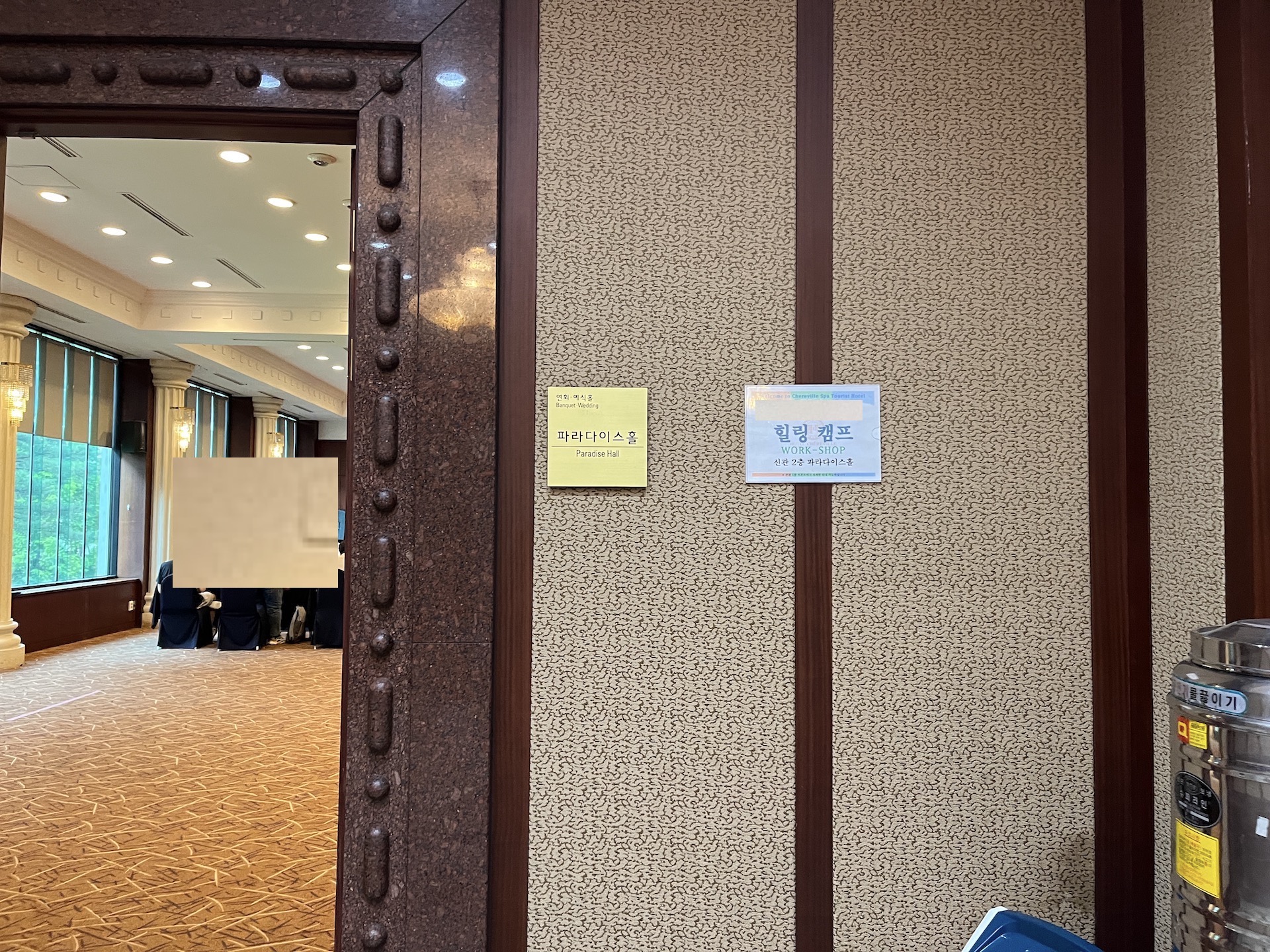 시간상 15시까지로 되어있으나 14:30쯤 끝나고, 식당 있는 별관 건물 2층의 세미나실 (파라다이스홀) 로 이동합니다.