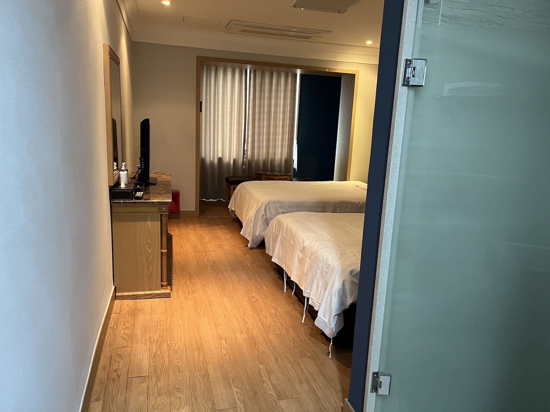 한편, 같이 간 동기는 침대 1개짜리 방에 배정되었는데,