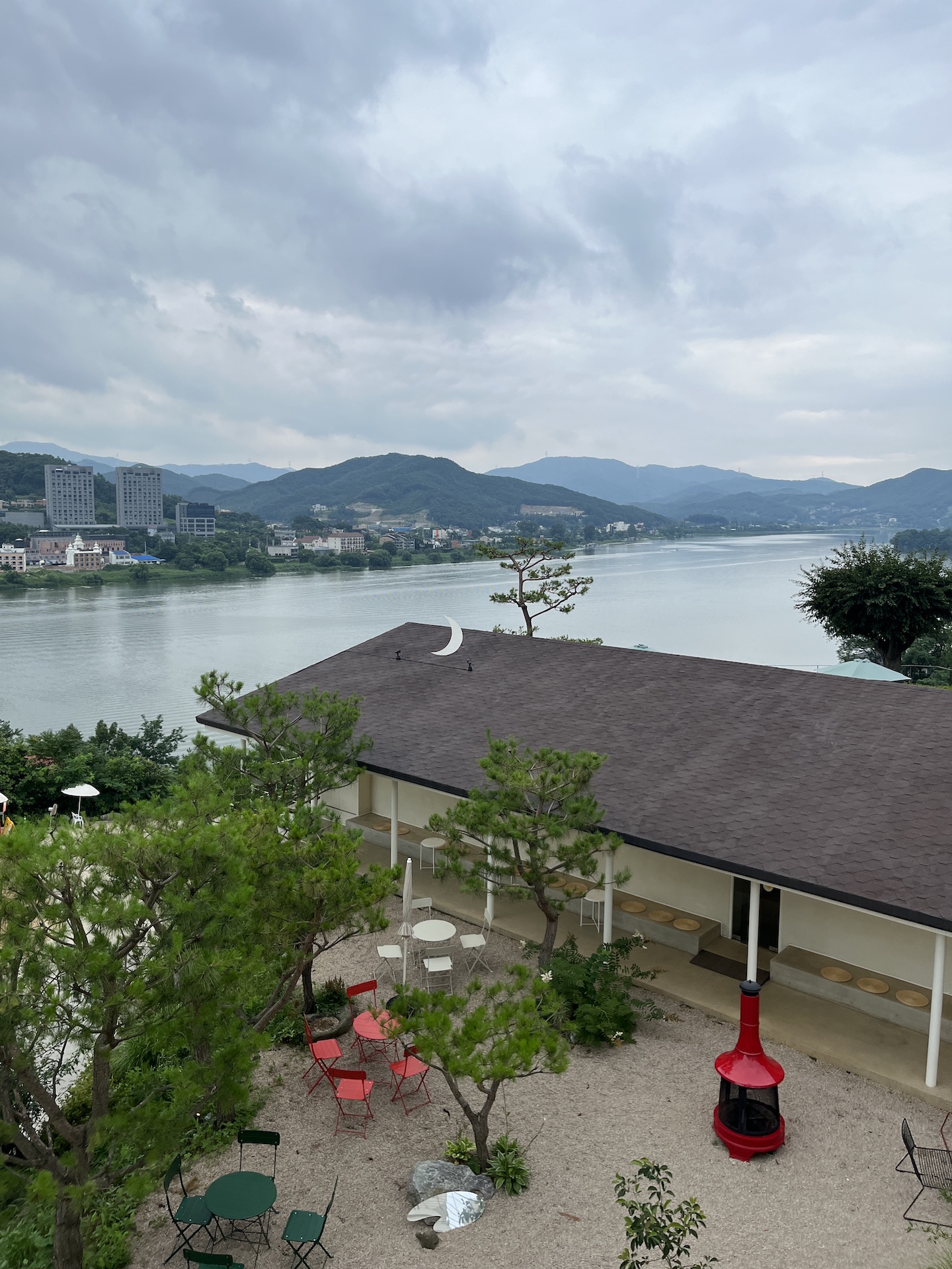 남한강 뷰를 뒤에 두고 커피와 디저트를 즐겨봅시다.