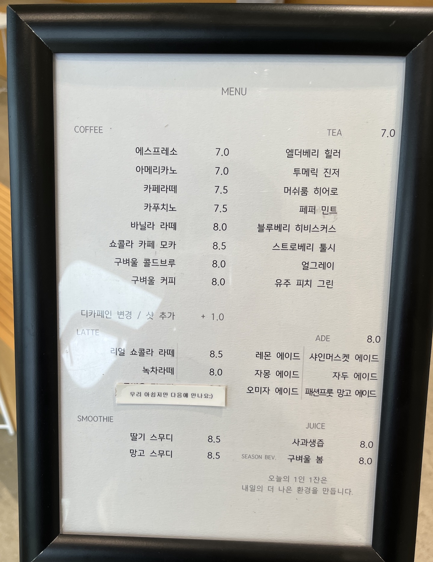 - 해당 카페의 이름을 건 시그니쳐 메뉴 (이 카페의 이름을 걸 정도인가?)