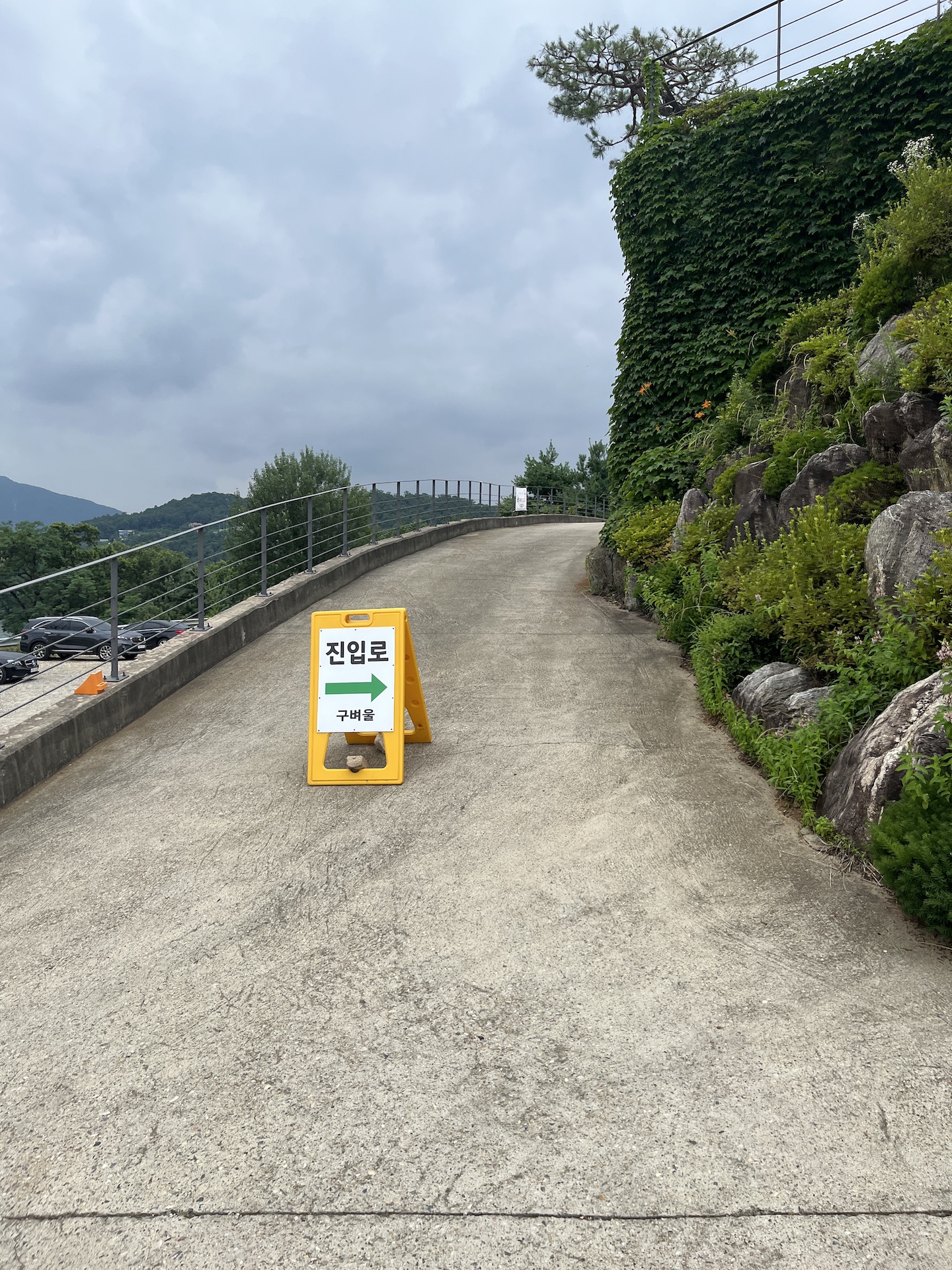 주차하고 카페로 올라가는 길은 화살표 방향입니다. (이 사진은 걸어내려오며 찍은 것)