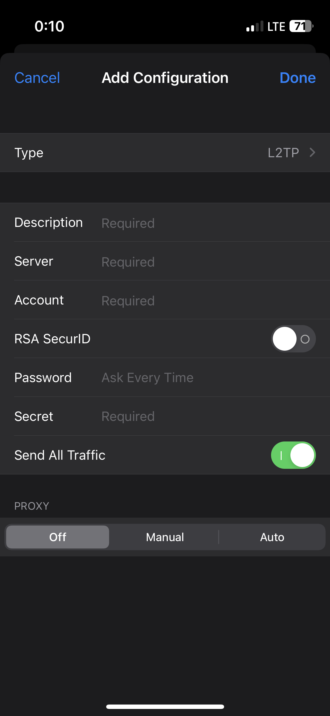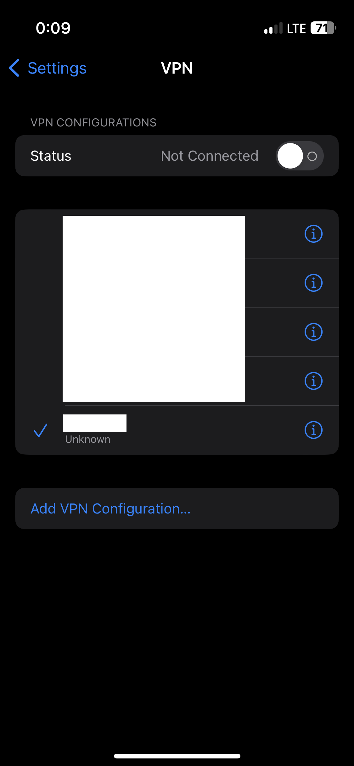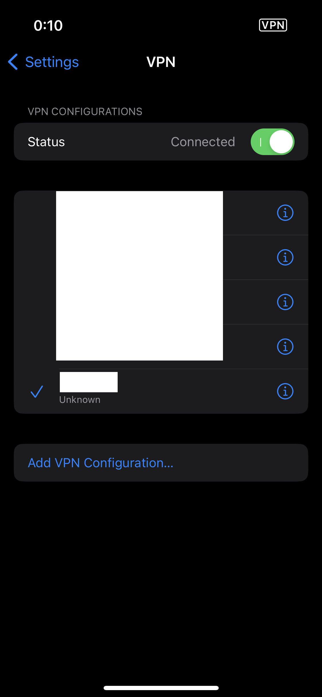 위의 Done 누르면 VPN항목에 하나가 추가된 것을 볼 수 있습니다.