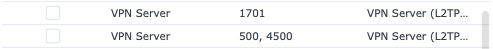 7) 스크롤 내려서 VPN Server - L2TP에 해당하는 (1701, 500, 4500) 포트 체크