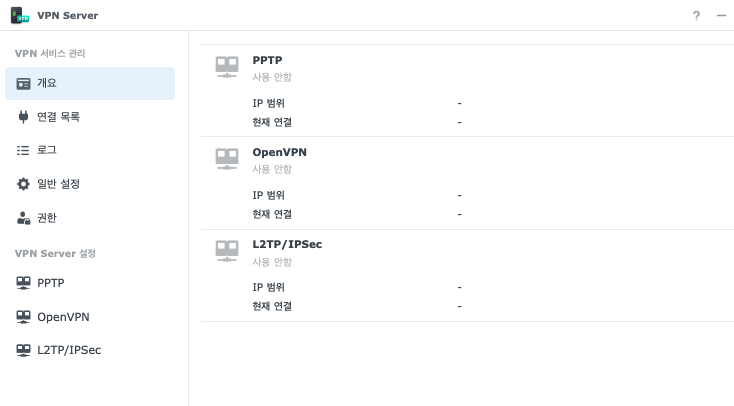 시기가 흐르고 Synology NAS (DS220+)를 들였고, 시놀로지 나스에는 VPN 기능이 있다는건 알았지만 따로 쓸 일이 없었는데,
