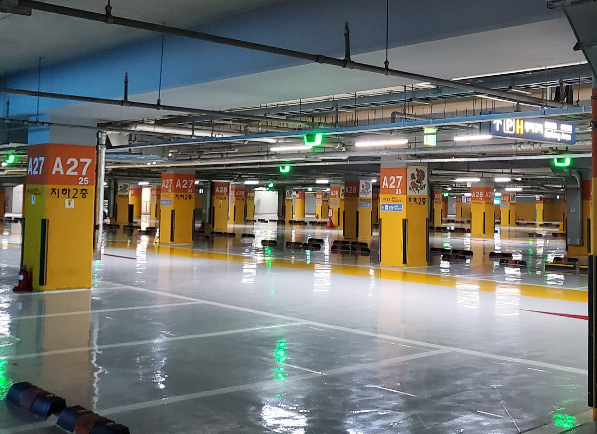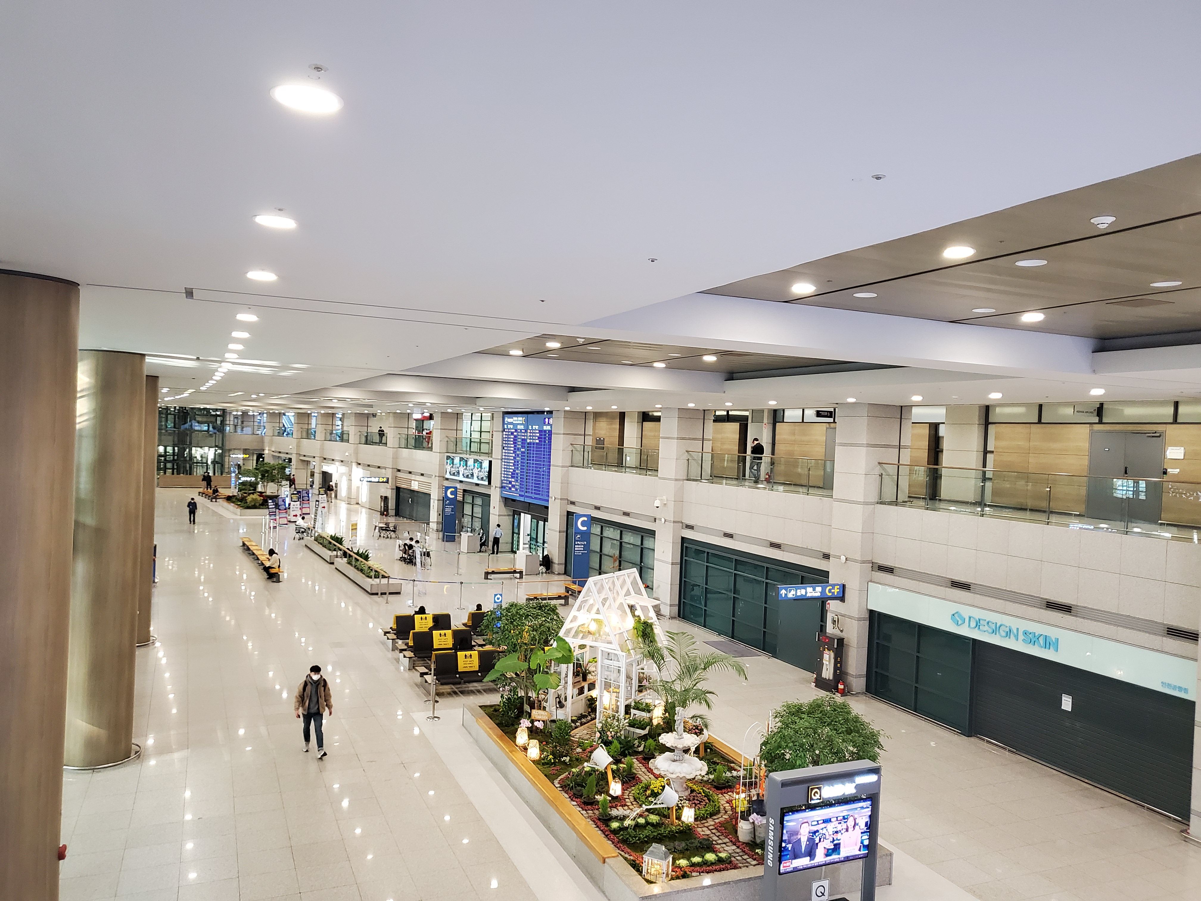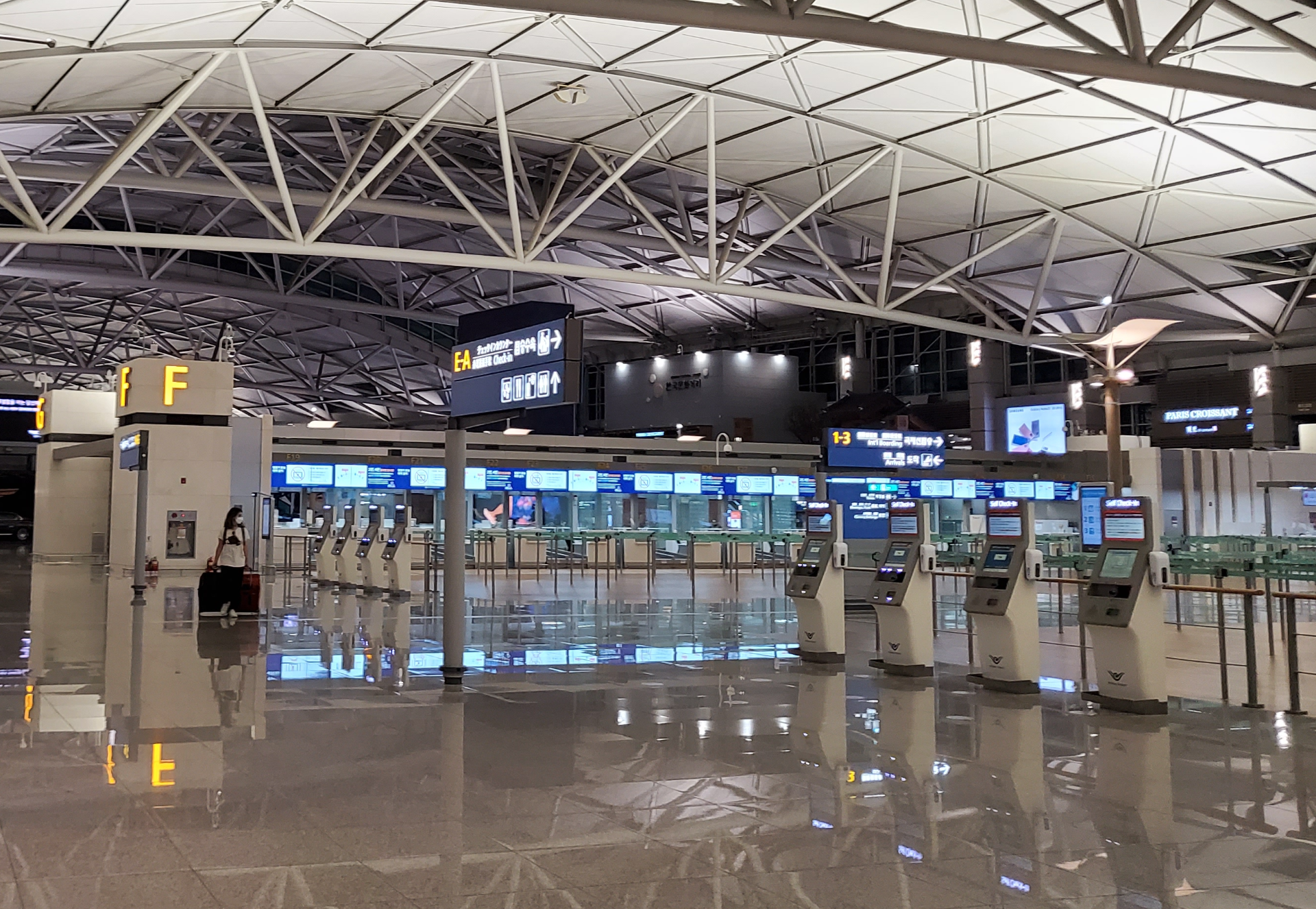 2020년 8월의 인천공항 주차장과 1터미널 출발층 3층. (오후 9시)