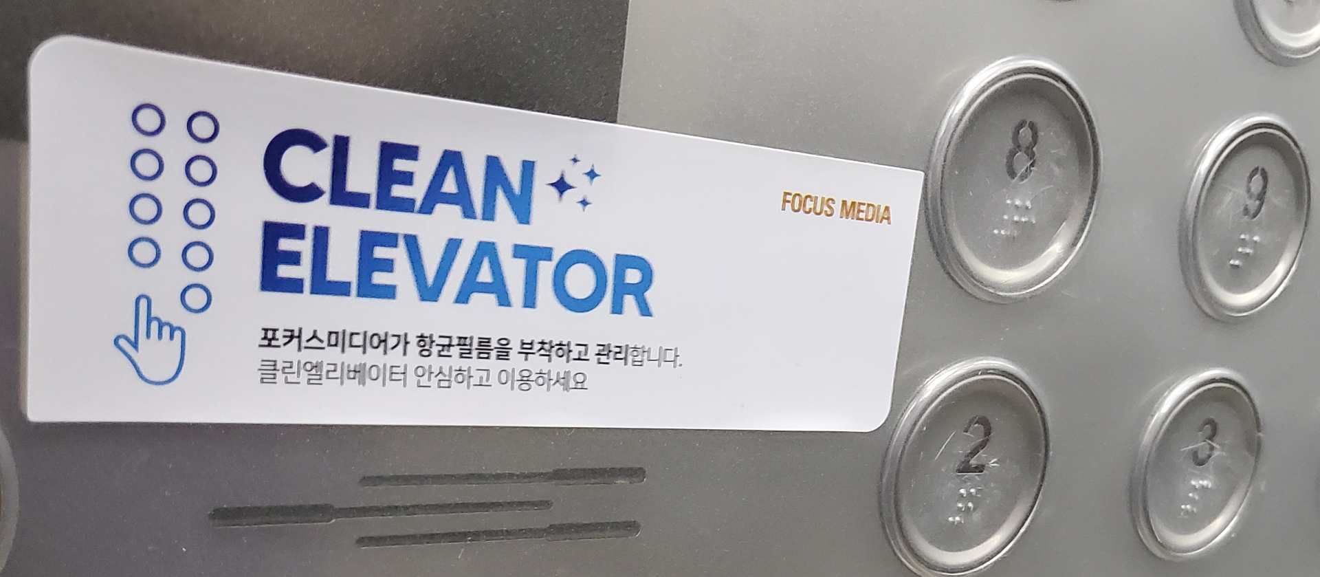 엘리베이터에는 이렇게 향균 필름이 붙은 버튼을 찾아볼 수 있었죠.